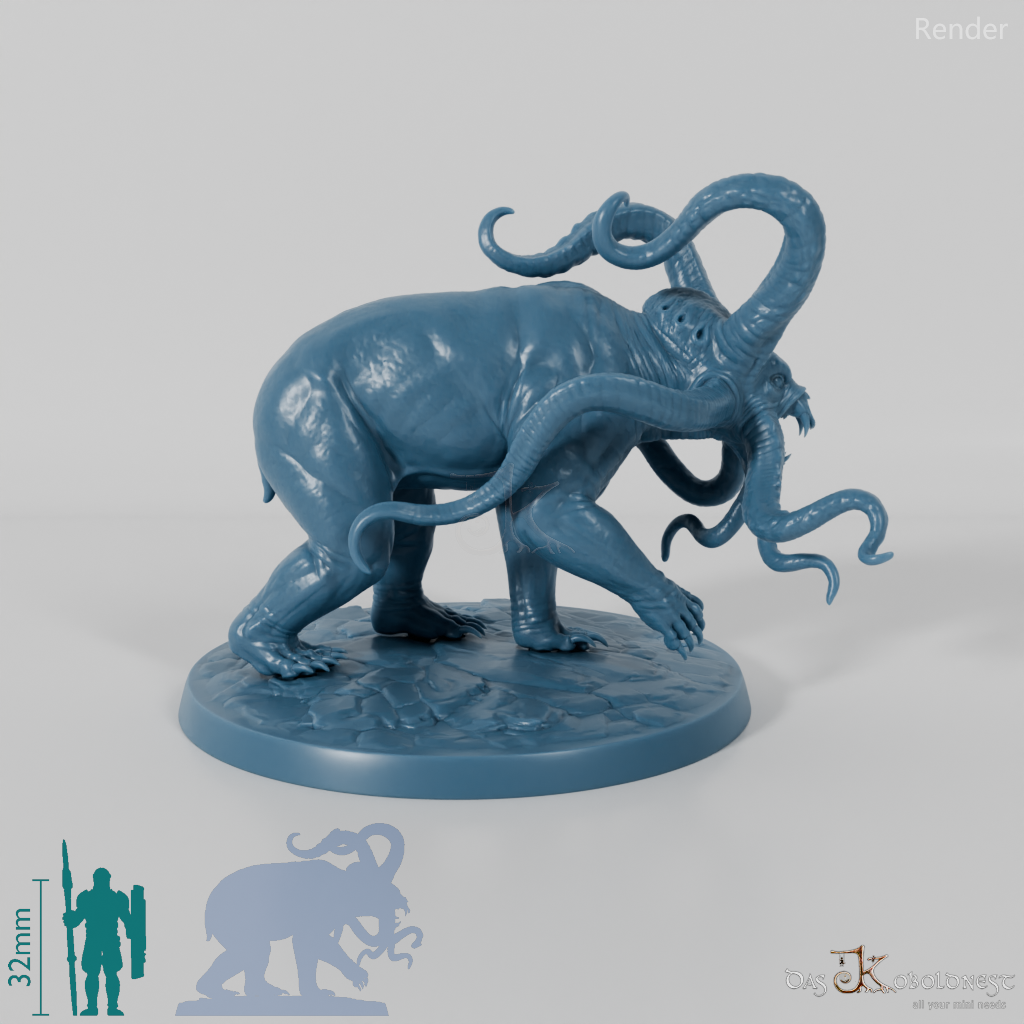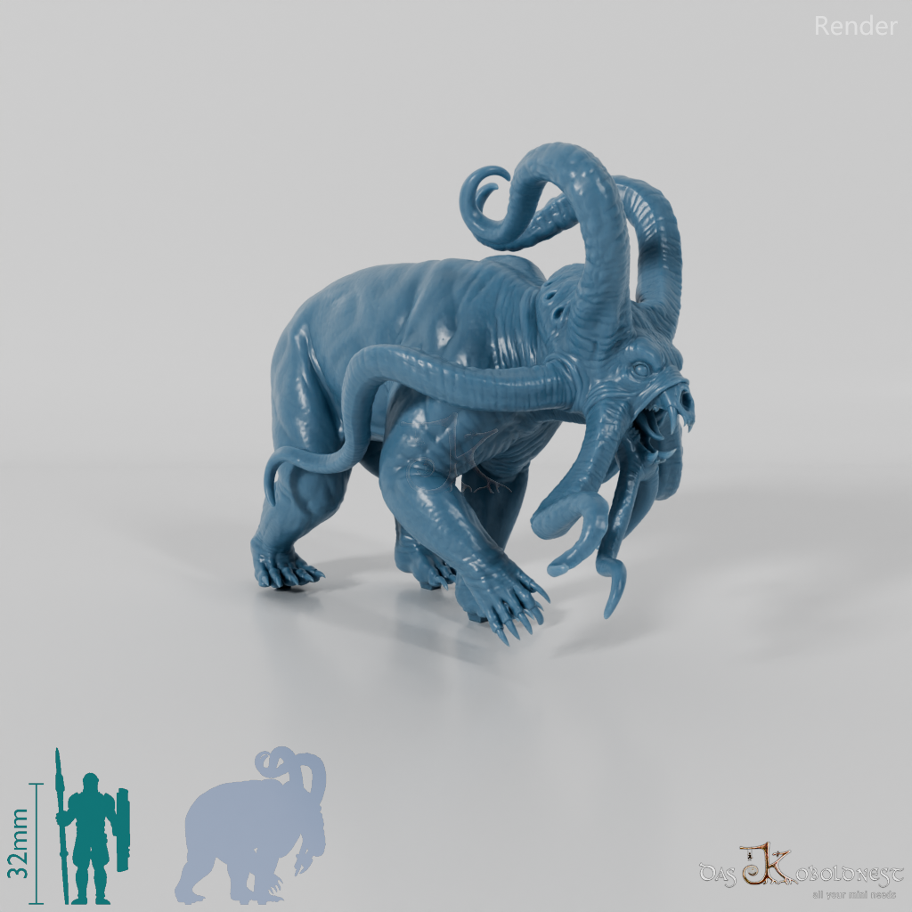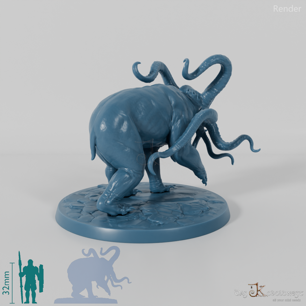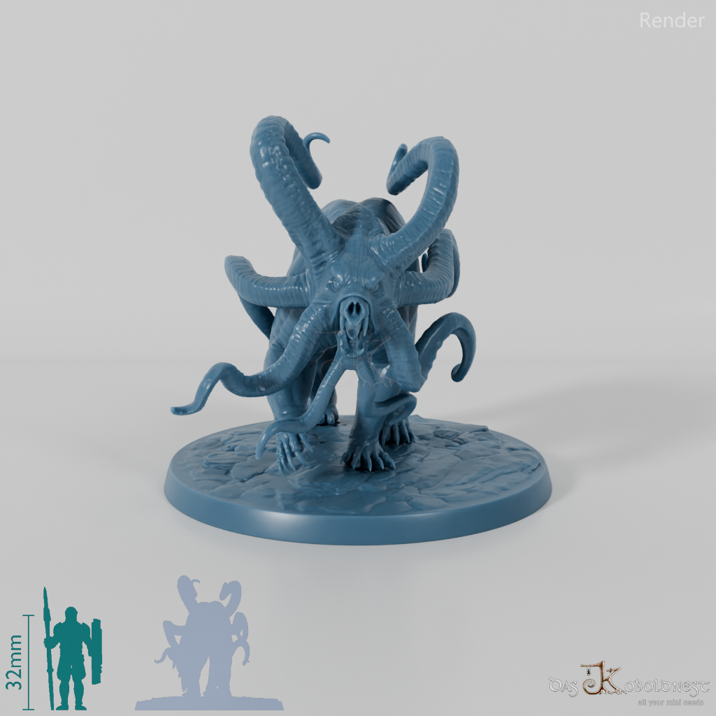 Abscheulichkeit mit fellosem Bärenkörper mit oktopusartigem Kopf, aus dem zahlreiche Tentakel wachsen.