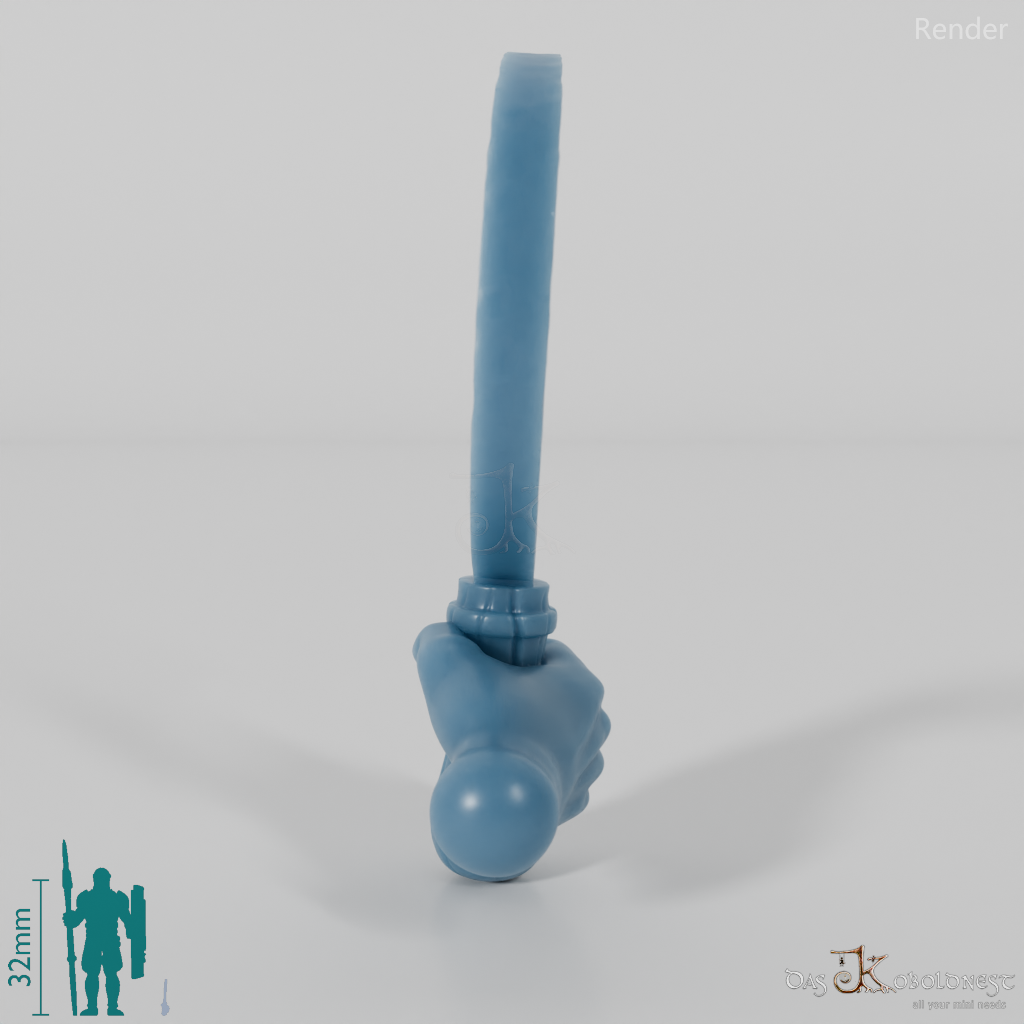 Kleine Sichel, die von einer Halblinghand gehalten wird. Das Modell kann beliebig mit allen modularen Körpern der Reihe "Greenshire Vigilantes" kombiniert werden. Im Customizer von The Printing Goes Ever On kannst du dir selbst eine Vorschau deiner modularen Halblingarmee erstellen und die perfekten Kombinationen für dich finden. Modell wahlweise mit rechter oder linker Hand verfügbar.