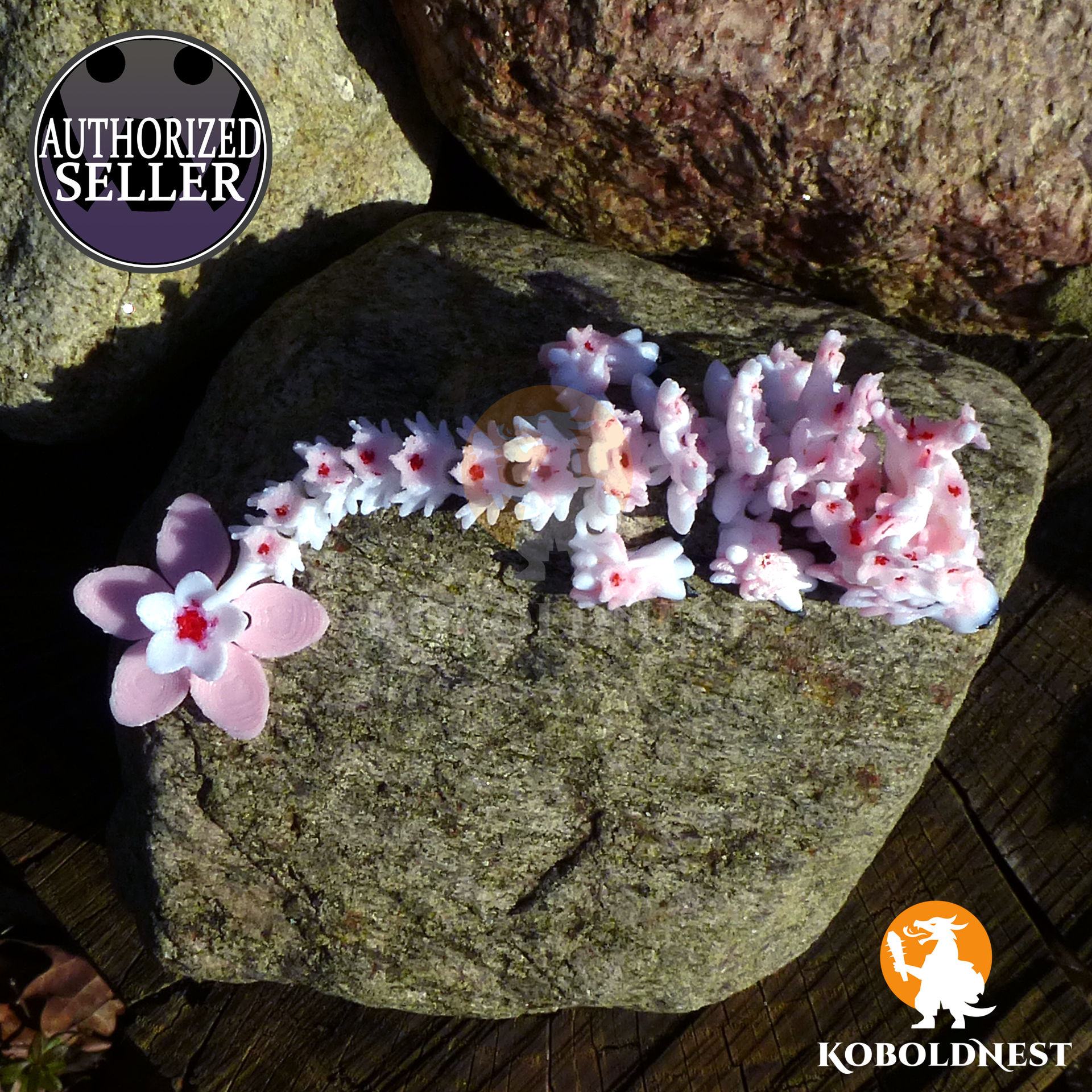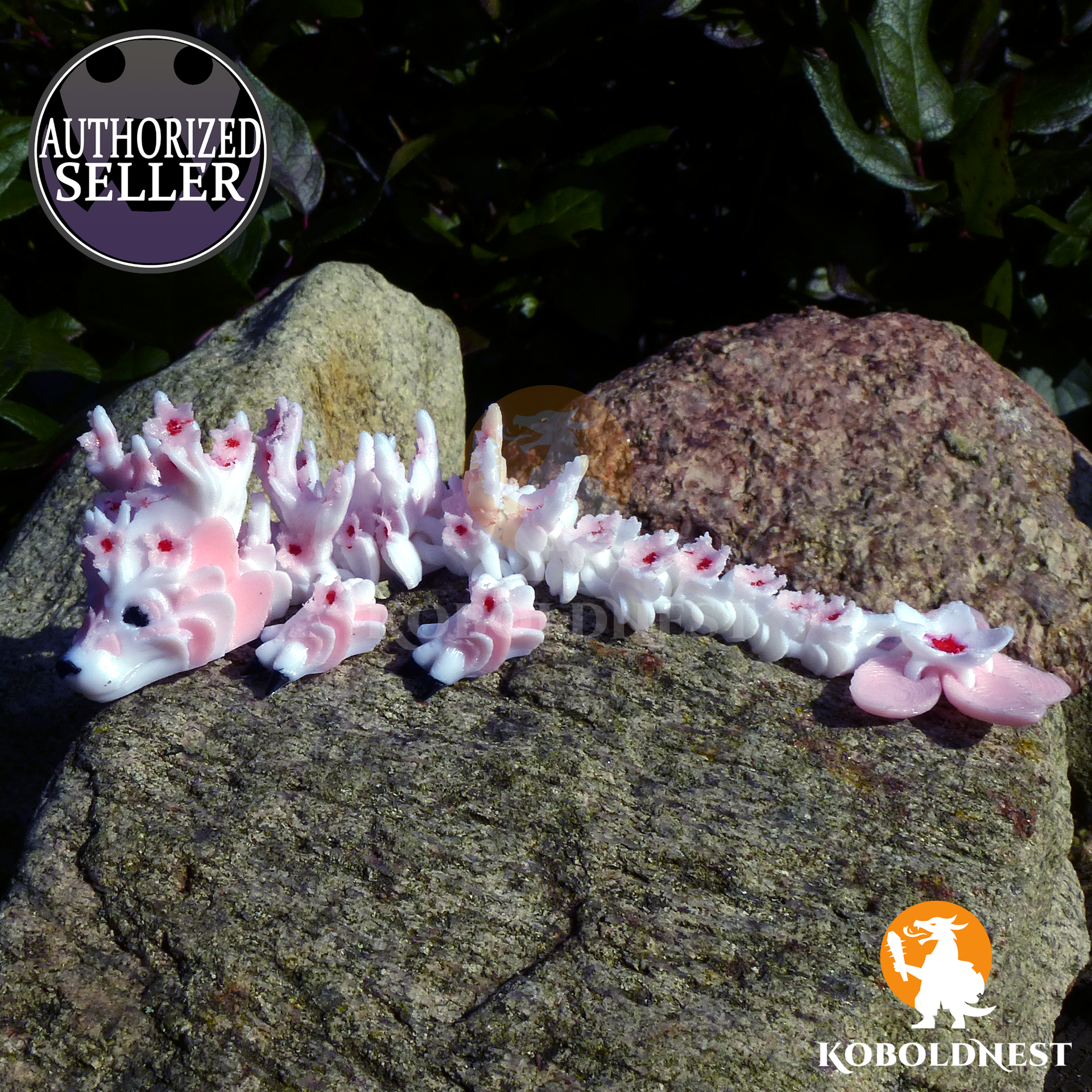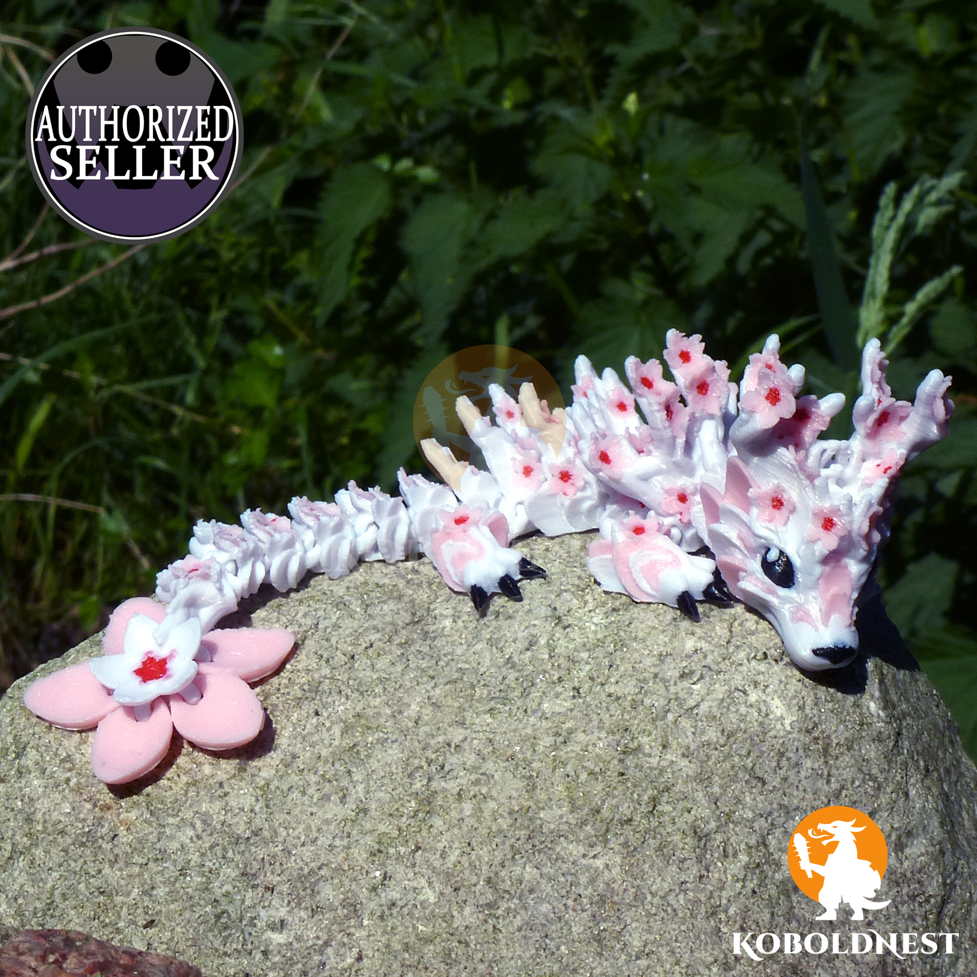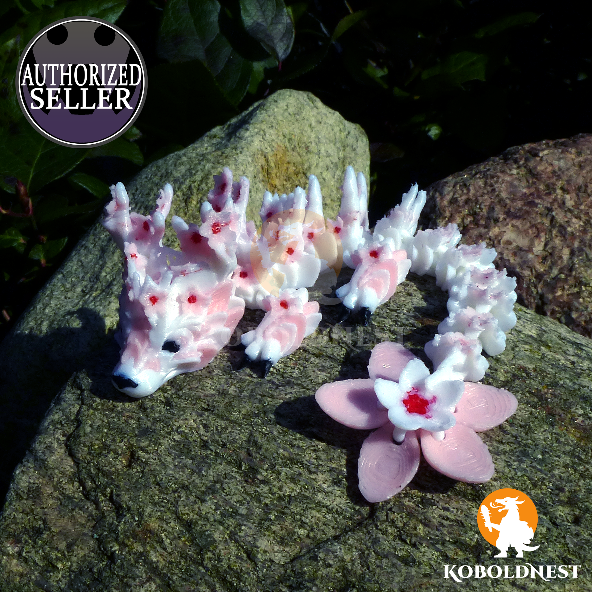 Der Frühling erwacht – und mit ihm dieses anmutige Kirschblüten-Drachenbaby, das zwischen zarten Blüten und filigranen Ästen seinen Platz gefunden hat. Sein Körper ist makellos weiß, als wäre er aus dem sanften Licht eines Frühlingsmorgens geformt, während sich auf Kopf und Rücken ein kunstvolles Geäst windet, über und über mit zarten Kirschblüten besetzt. Die rosa Blütenblätter, in deren Mitte ein feuriges Rot glimmt, scheinen im Wind zu tanzen, als hätte der Drache eben erst seinen Platz unter einem uralten Kirschbaum verlassen. Doch täusch dich nicht – hinter dieser zerbrechlichen Anmut verbirgt sich eine neugierige Kreatur mit schwarzen Krallen, die sich flink durch die Welt tastet, und einer dunklen Schnauze, unter der sich zweifellos ein verspieltes Grinsen verbirgt. Anders als seine wilden Verwandten, die in den Lüften kreisen oder auf Goldschätzen schlafen, ist dieses Drachenbaby ein stiller Begleiter für all jene, die sich der Schönheit flüchtiger Augenblicke verschrieben haben. Vielleicht ruht es auf deinem Schreibtisch, bereit, dich bei Tagträumen von fernen Frühlingsfesten zu inspirieren? Oder es wacht in einem Regal über eine Sammlung anderer seltener Kreaturen, stets bereit, mit seinem sanften Blütenduft die Fantasie zu beflügeln. Eines ist sicher – wo auch immer es sich niederlässt, es bringt den Zauber eines endlosen Frühlings mit sich.