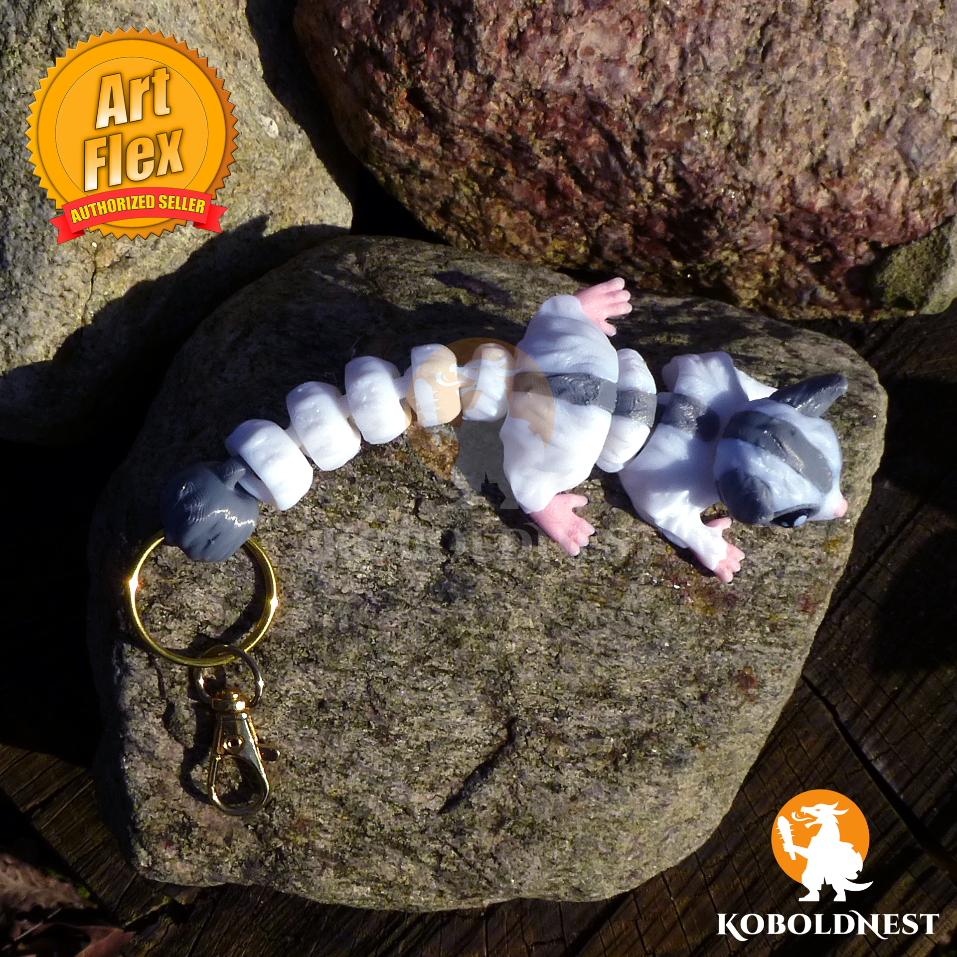 Ein kleiner Akrobat für unterwegs! Dieses Gleithörnchen ist nicht nur eine drollige Miniatur seines lebendigen Vorbilds, sondern auch ein perfekter Begleiter für Schlüsselbund, Rucksack oder Mäppchen. Mit seinen kugelrunden Augen wirkt er stets neugierig, als hätte er gerade etwas Spannendes erspäht – vielleicht den nächsten Leckerbissen oder einfach nur ein gemütliches Plätzchen zum Verweilen. Sein Körper erstrahlt in sanftem Weiß mit einer feinen grauen Musterung, die seine natürliche Tarnung nachahmt, während seine zarten rosa Pfoten ihm einen verspielten Touch verleihen. Und natürlich darf der lange, buschige Schwanz nicht fehlen! Geschmeidig schlängelt er sich hinterher und macht klar: Auch wenn dieser Sugar Glider nicht von Ast zu Ast gleiten kann, ist er bereit, überall mitzureisen. Ob als Glücksbringer, als süßer Blickfang oder als Erinnerung an wilde Nächte voller Abenteuer – dieses kleine Flexi-Tier bringt ein Stückchen Natur auf charmante Weise in den Alltag.