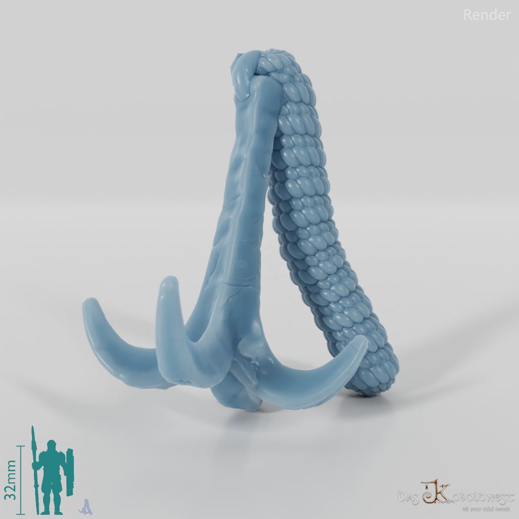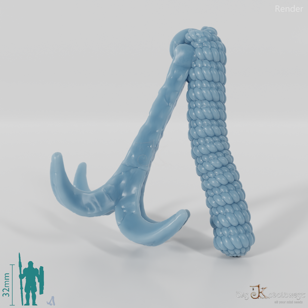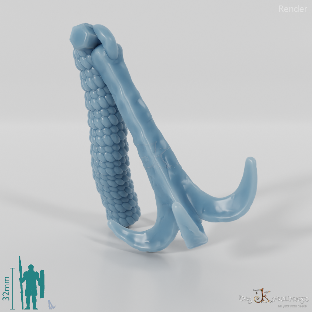 Vierendiger Enterhaken mit aufgewickeltem Seil. Das Modell kann beliebig mit allen modularen Körpern der Reihe "Die Armee der Toten" kombiniert werden. Im Customizer von The Printing Goes Ever On kannst du dir selbst eine Vorschau deiner modularen Geisterarmee erstellen und die perfekten Kombinationen für dich finden.