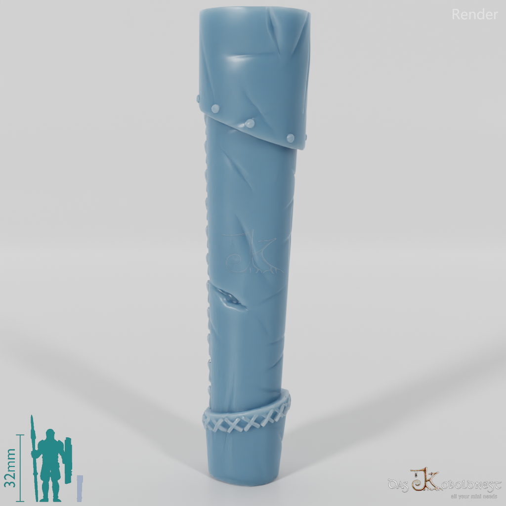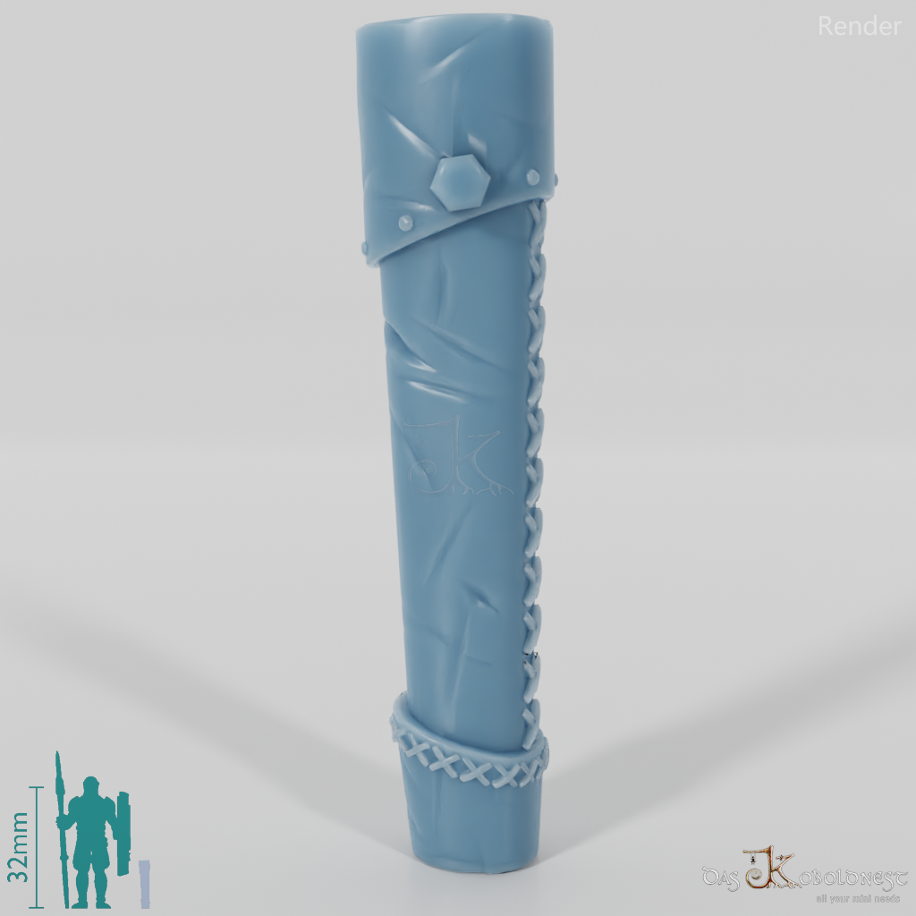 Abgewetzter, vernarbter Pfeilköcher. Das Modell kann beliebig mit allen modularen Körpern der Reihe "Die Armee der Toten" kombiniert werden. Im Customizer von The Printing Goes Ever On kannst du dir selbst eine Vorschau deiner modularen Geisterarmee erstellen und die perfekten Kombinationen für dich finden.