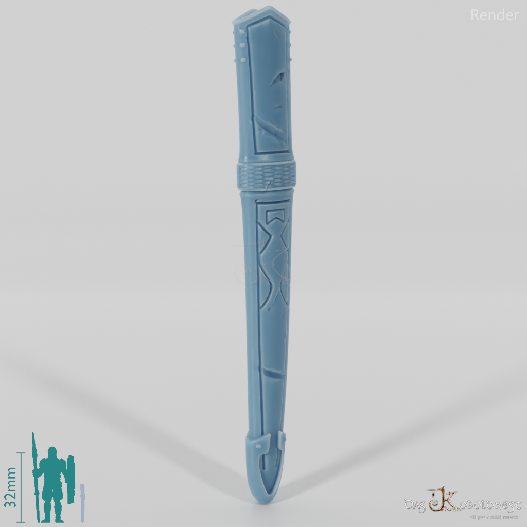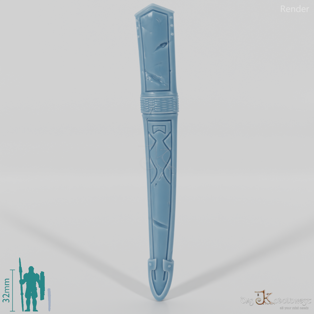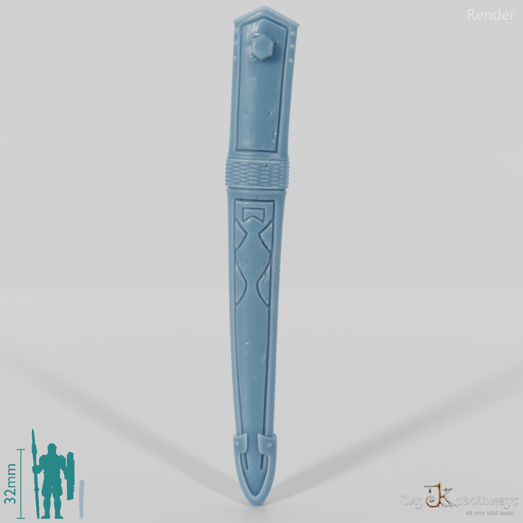 Abgewetzte, vernarbte Schwertscheide. Das Modell kann beliebig mit allen modularen Körpern der Reihe "Die Armee der Toten" kombiniert werden. Im Customizer von The Printing Goes Ever On kannst du dir selbst eine Vorschau deiner modularen Geisterarmee erstellen und die perfekten Kombinationen für dich finden.