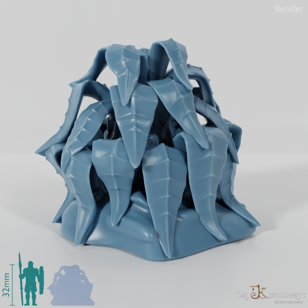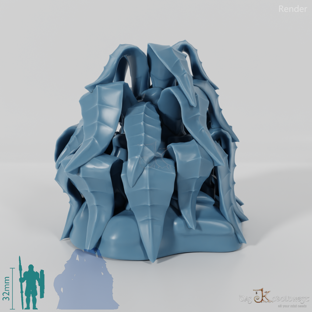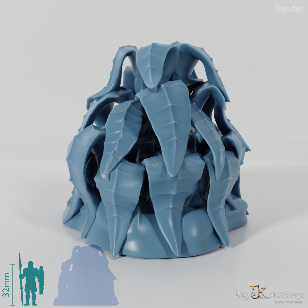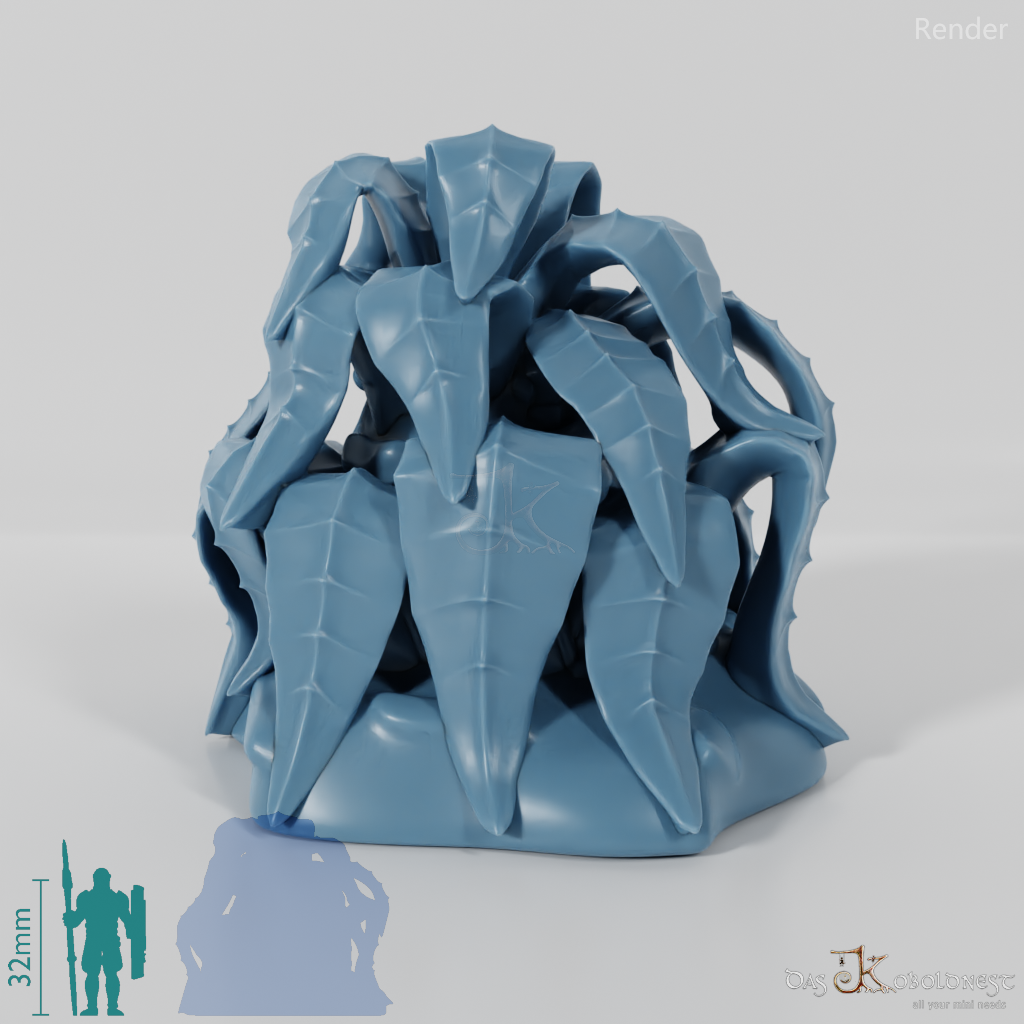 Große, breitblättrige Pflanze ohne Stamm. Als große Urzeitpflanze oder "normalgroße" Pflanze verfügbar.   Modell: Tabletop plant: Jungle Bush by GrimGreeble, lizenziert unter CC BY-SA 3.0.