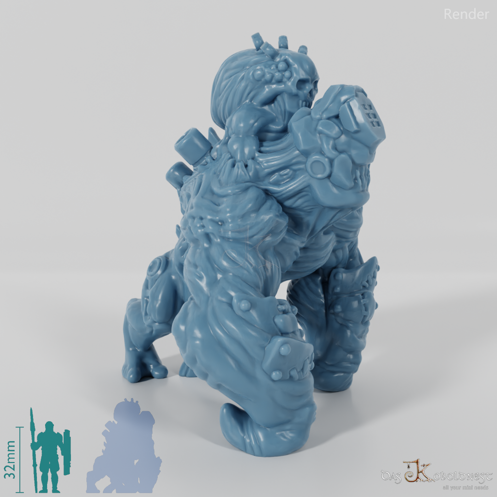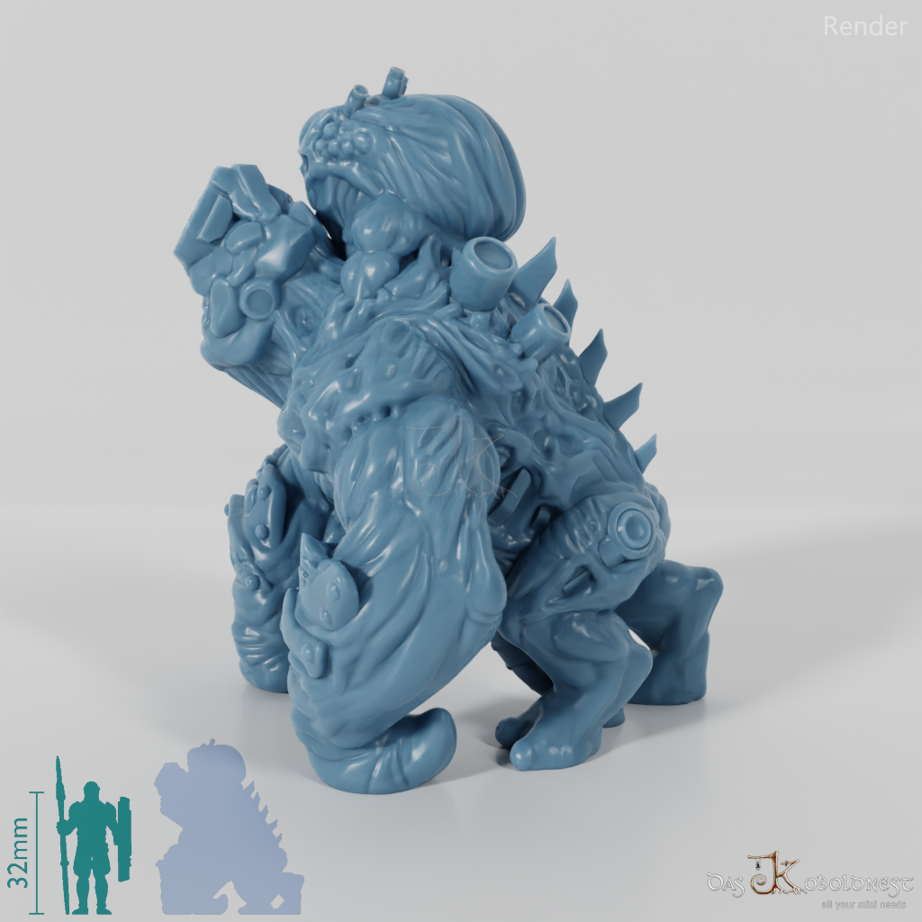 Massiver, sich auf allen Vieren fortbewegender Mutant, der mit einer annähernd humanoiden Gestalt auf seinem Rücken verwachsen ist.