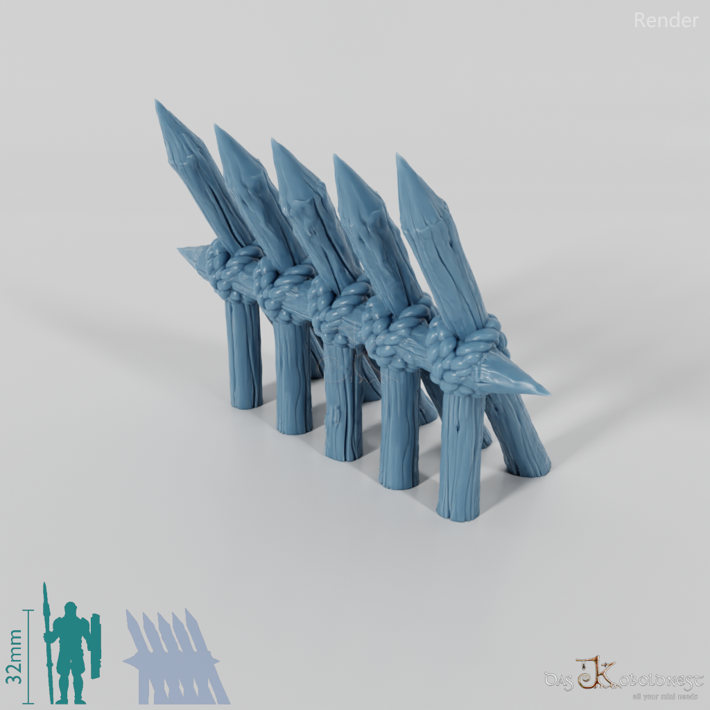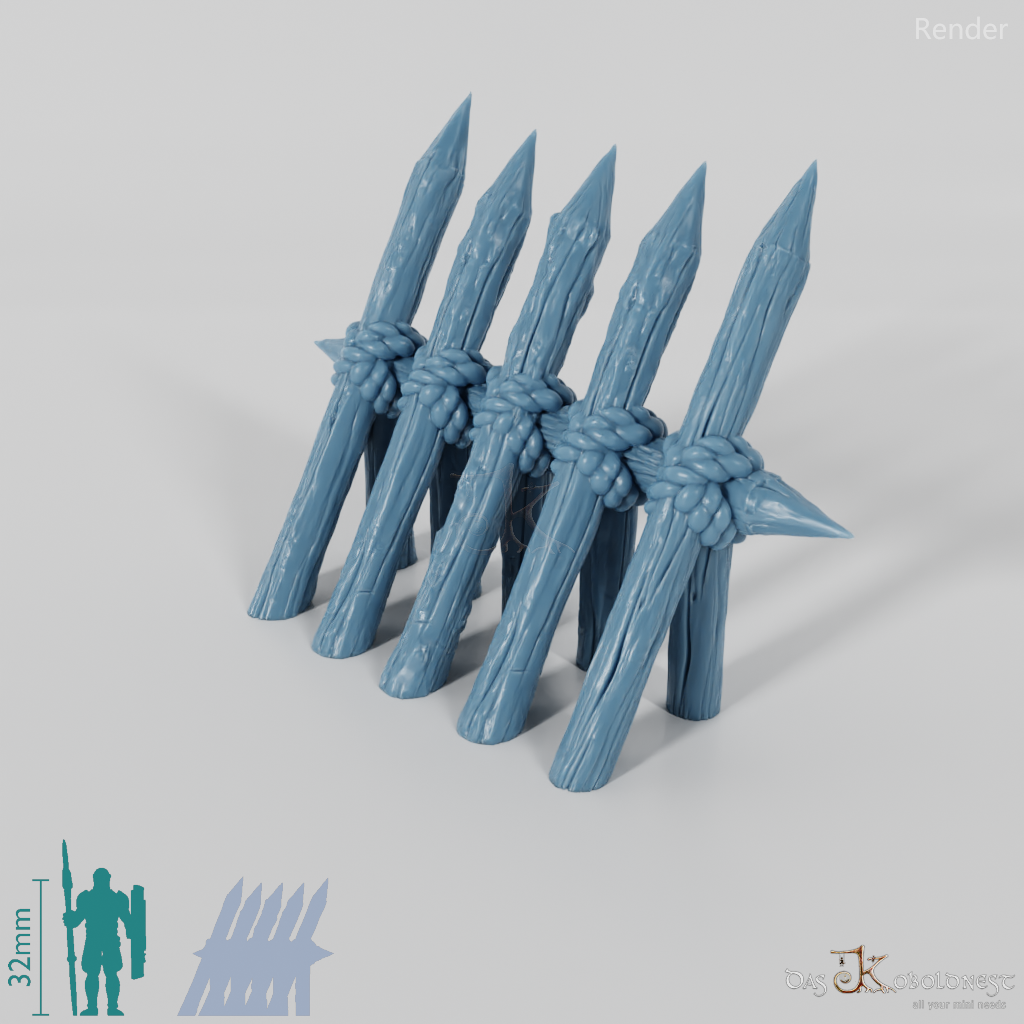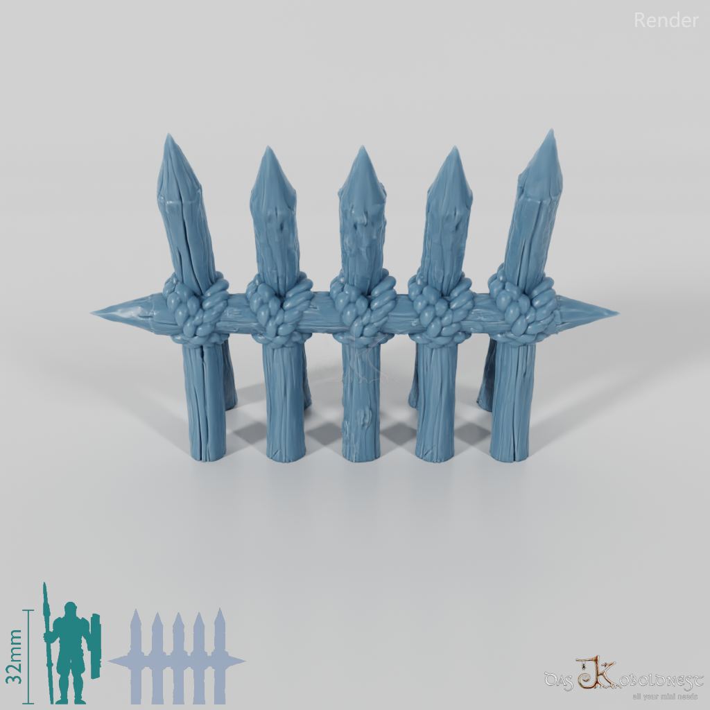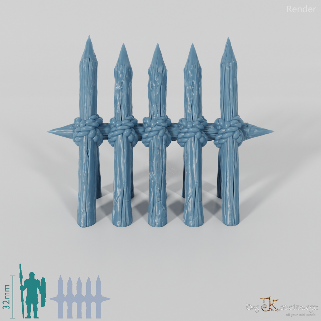Mit dicken Seilen vertäute, angespitzte Holzstämme
