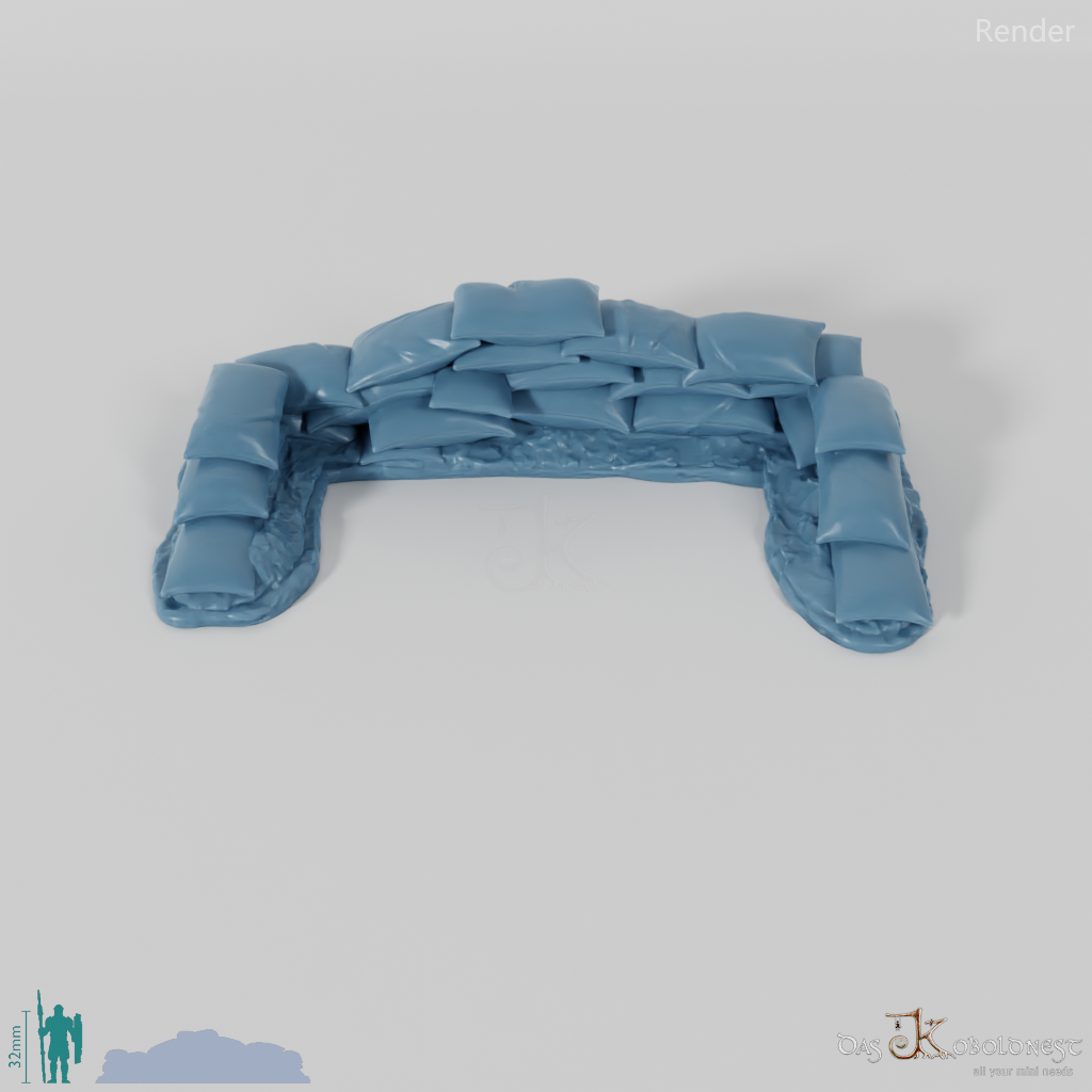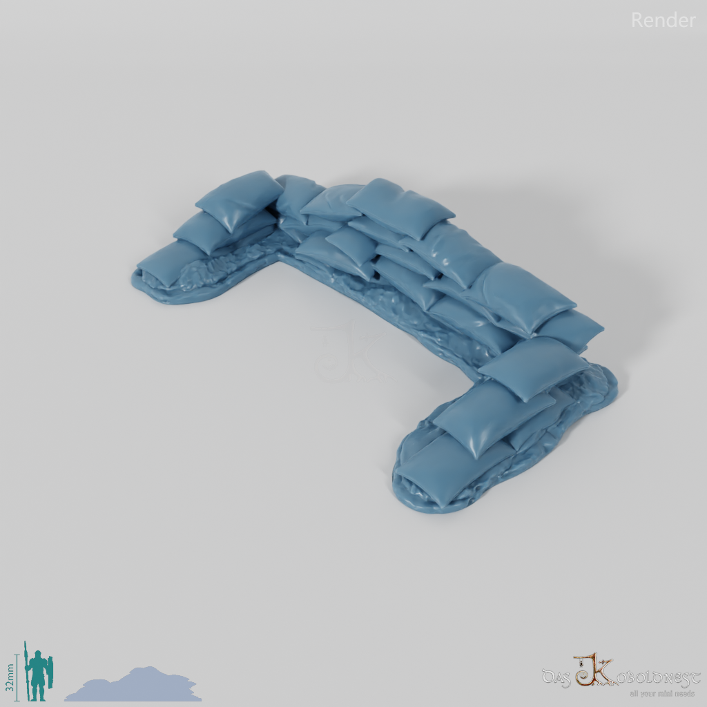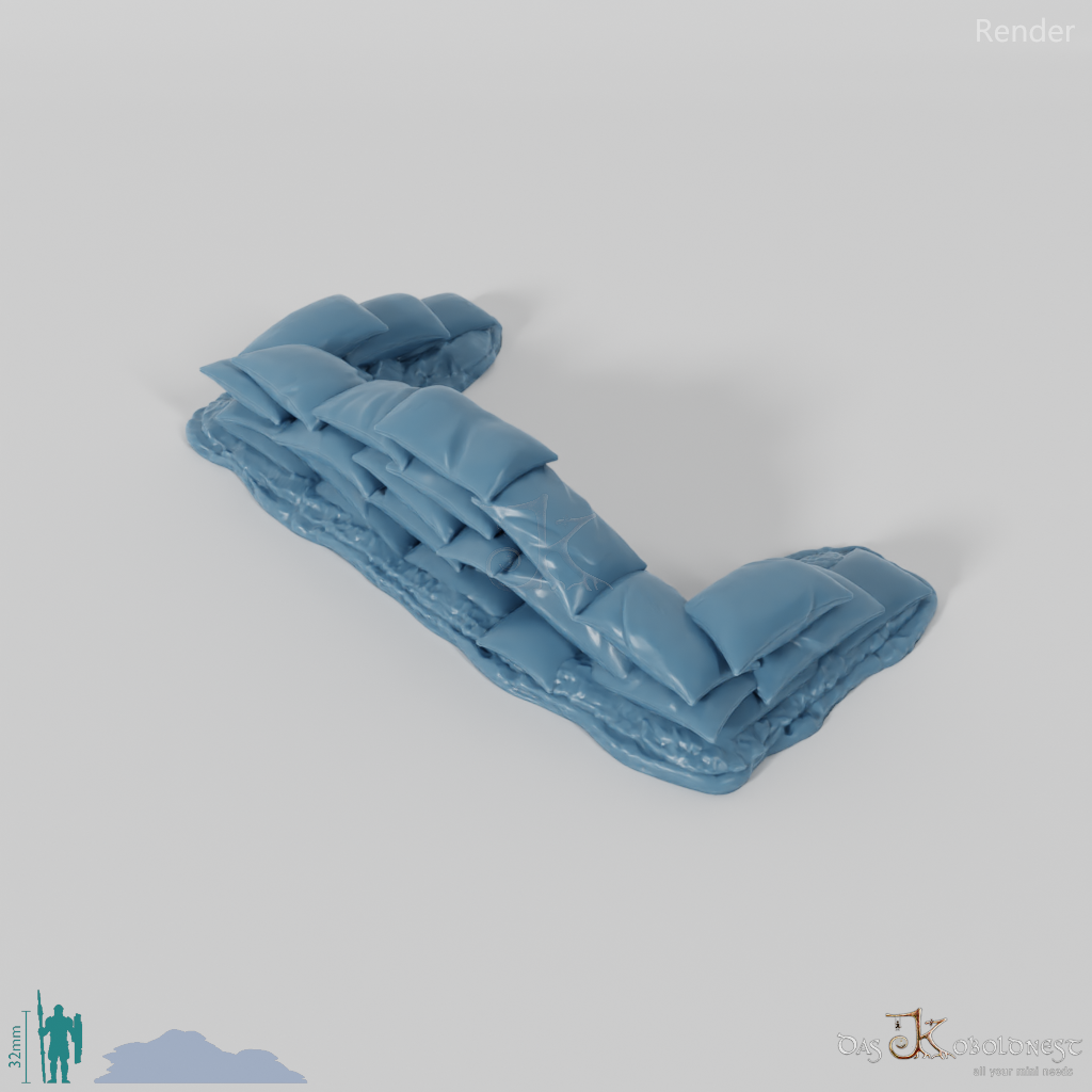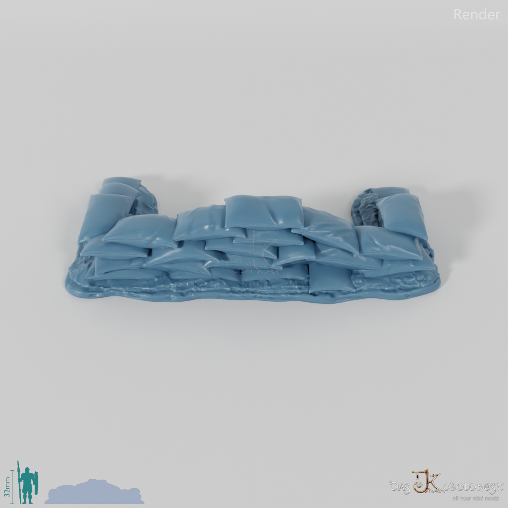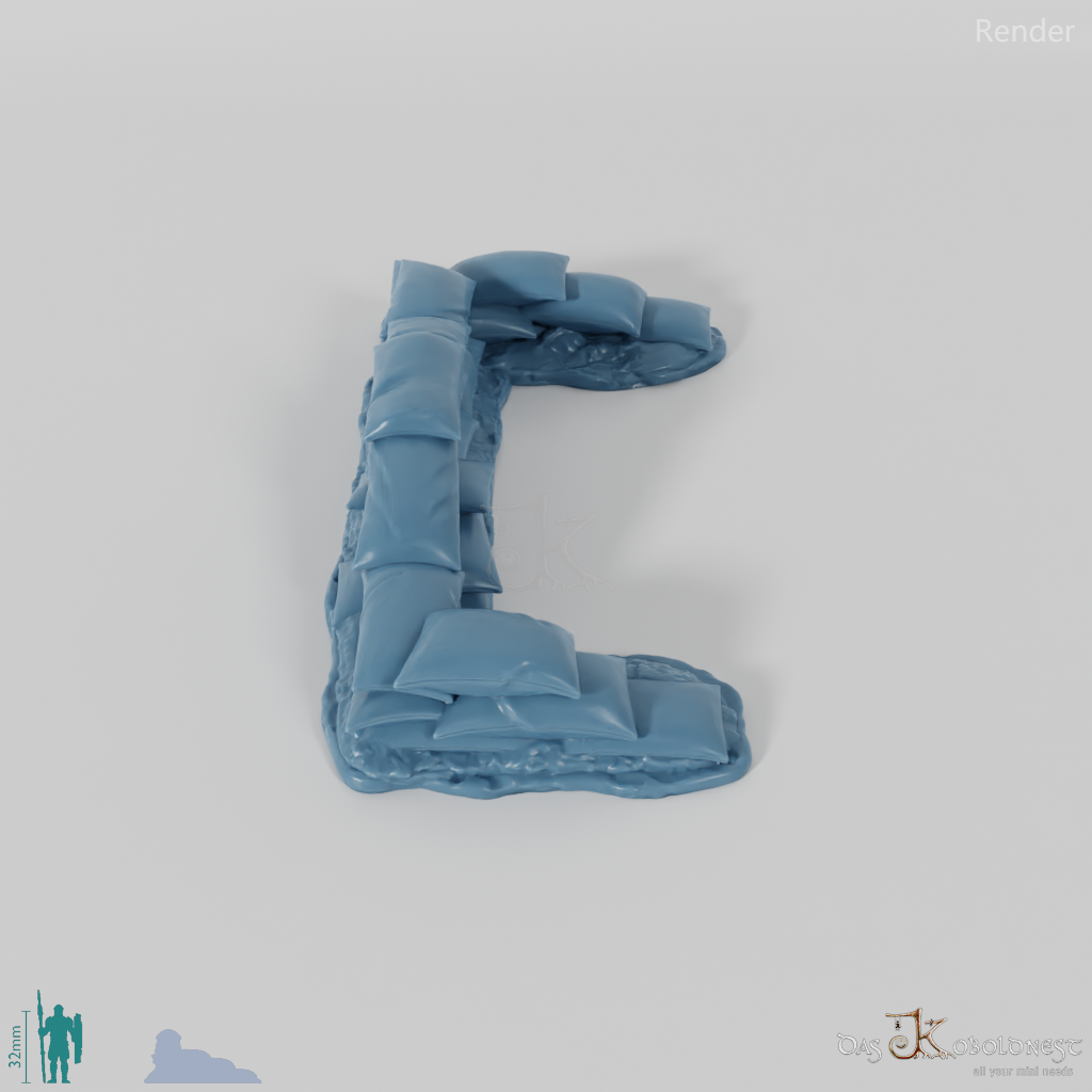 Zu drei Seiten aufgeschichteter Haufen Sandsäcke
