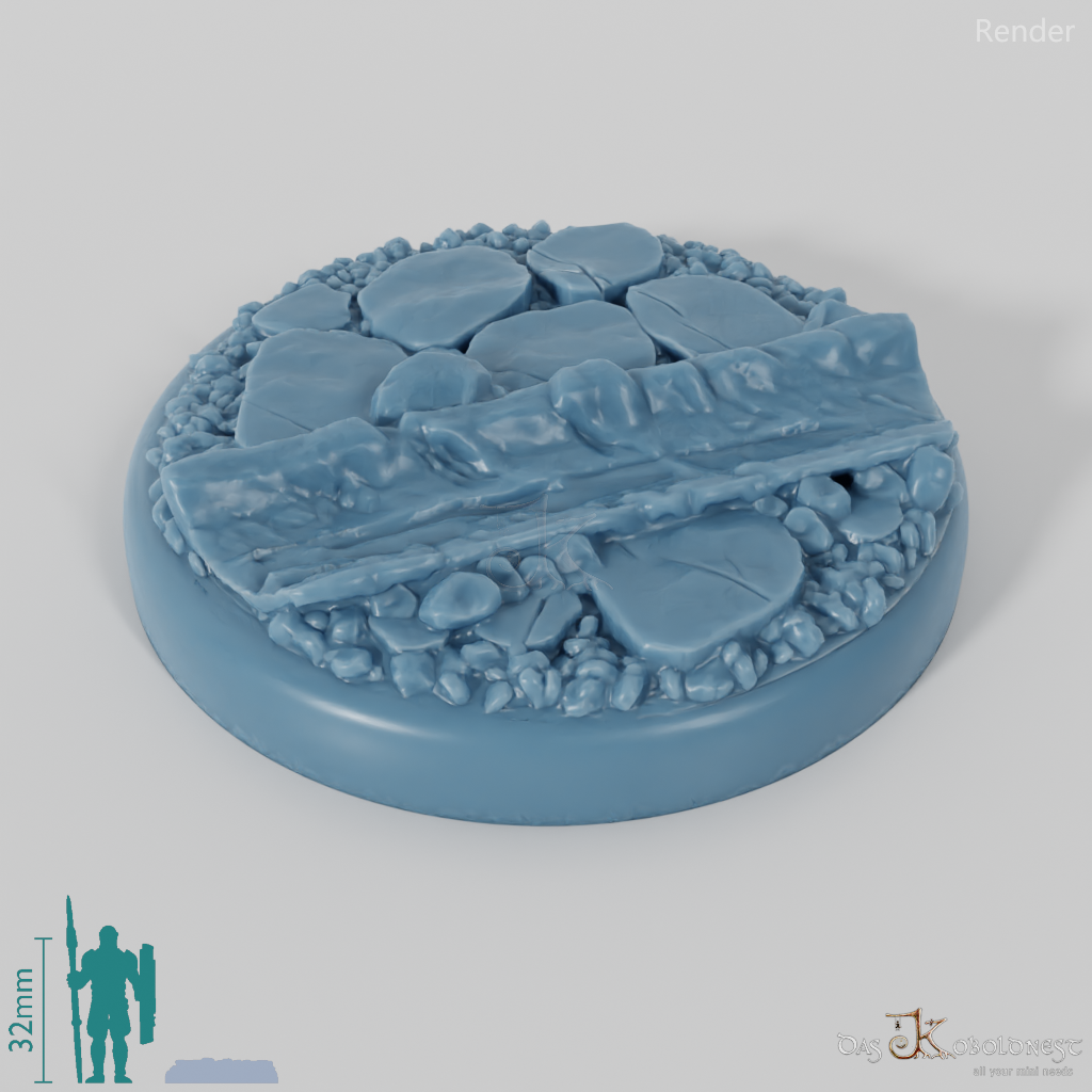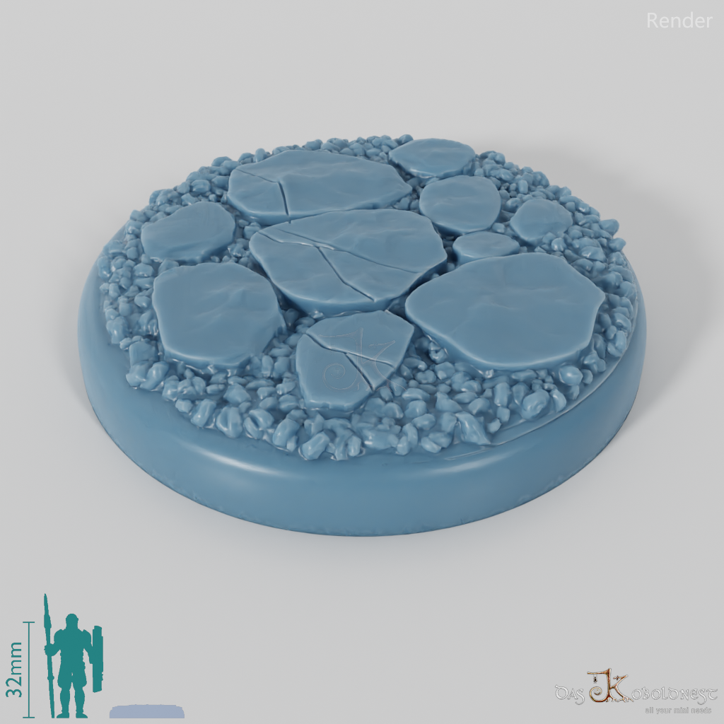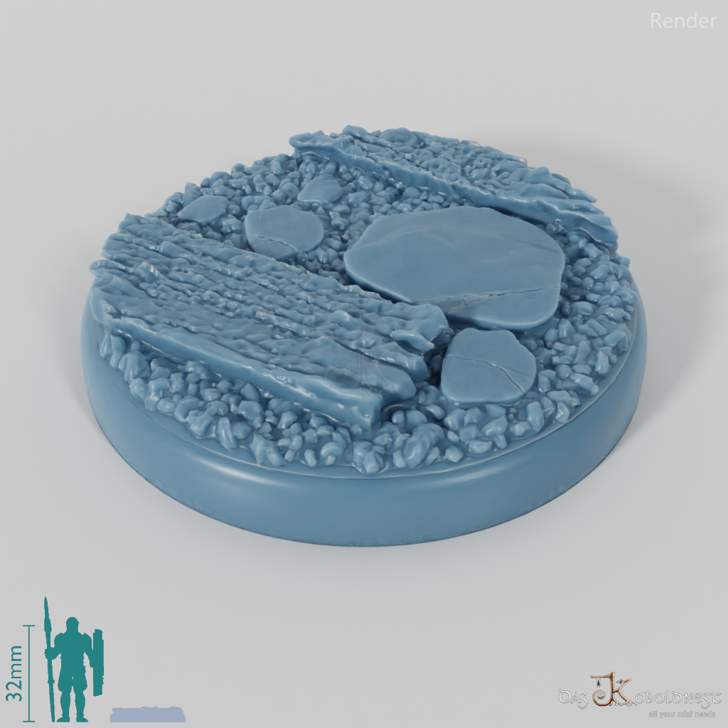 Base mit kleinen und größeren Steinen, sowie Wagenspuren (entsprechende Bases werden bei Dropdown-Auswahl angezeigt). Bases mit verschiedenem Durchmesser verfügbar.