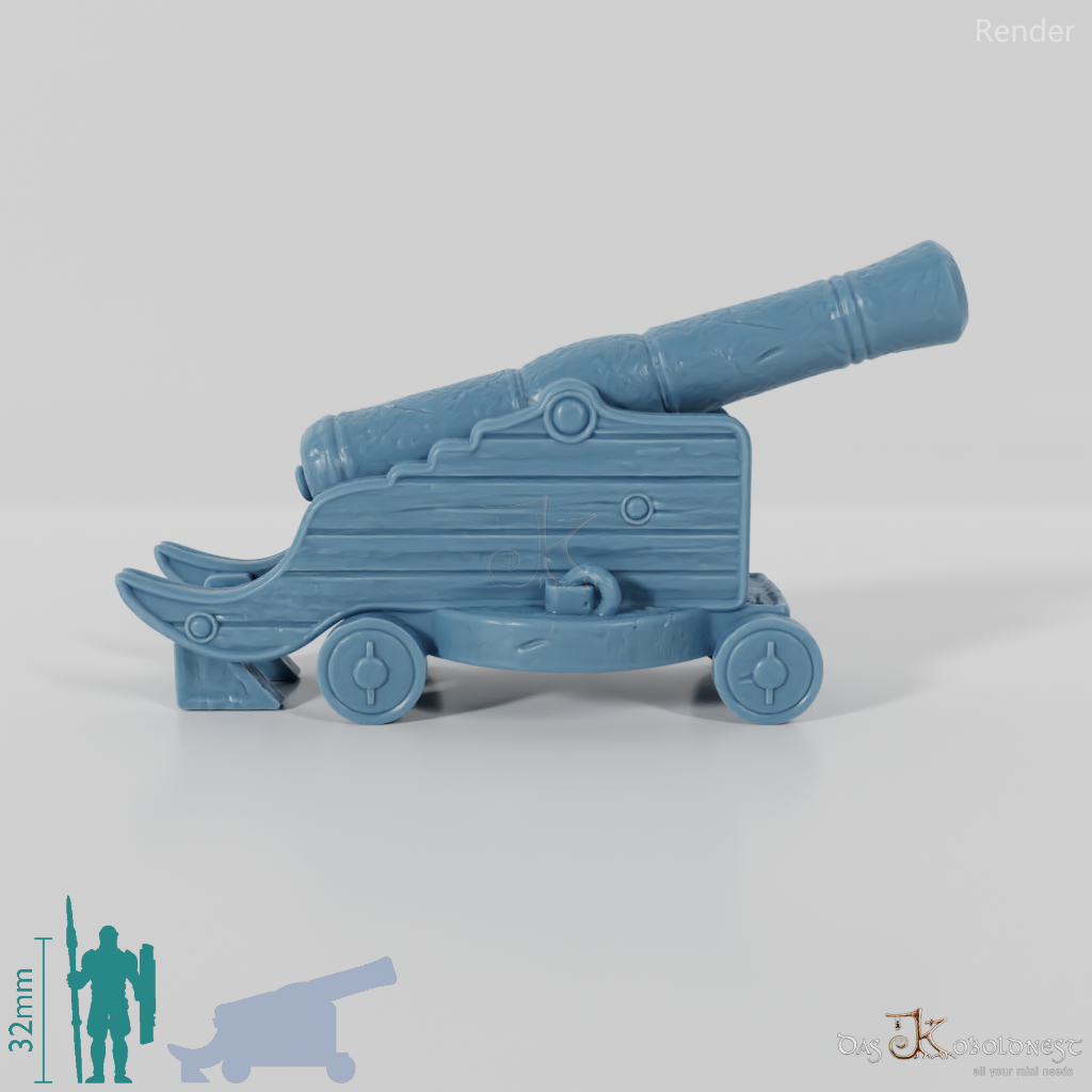 Fahrbare Metallkanone auf einem Holzgestell mit Rädern