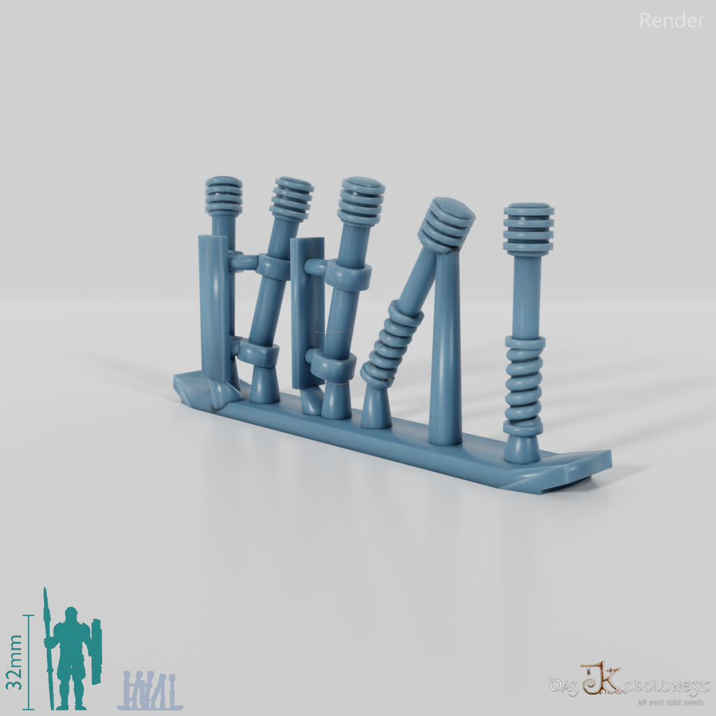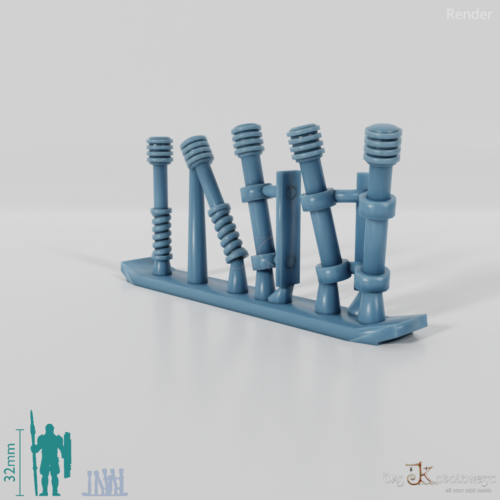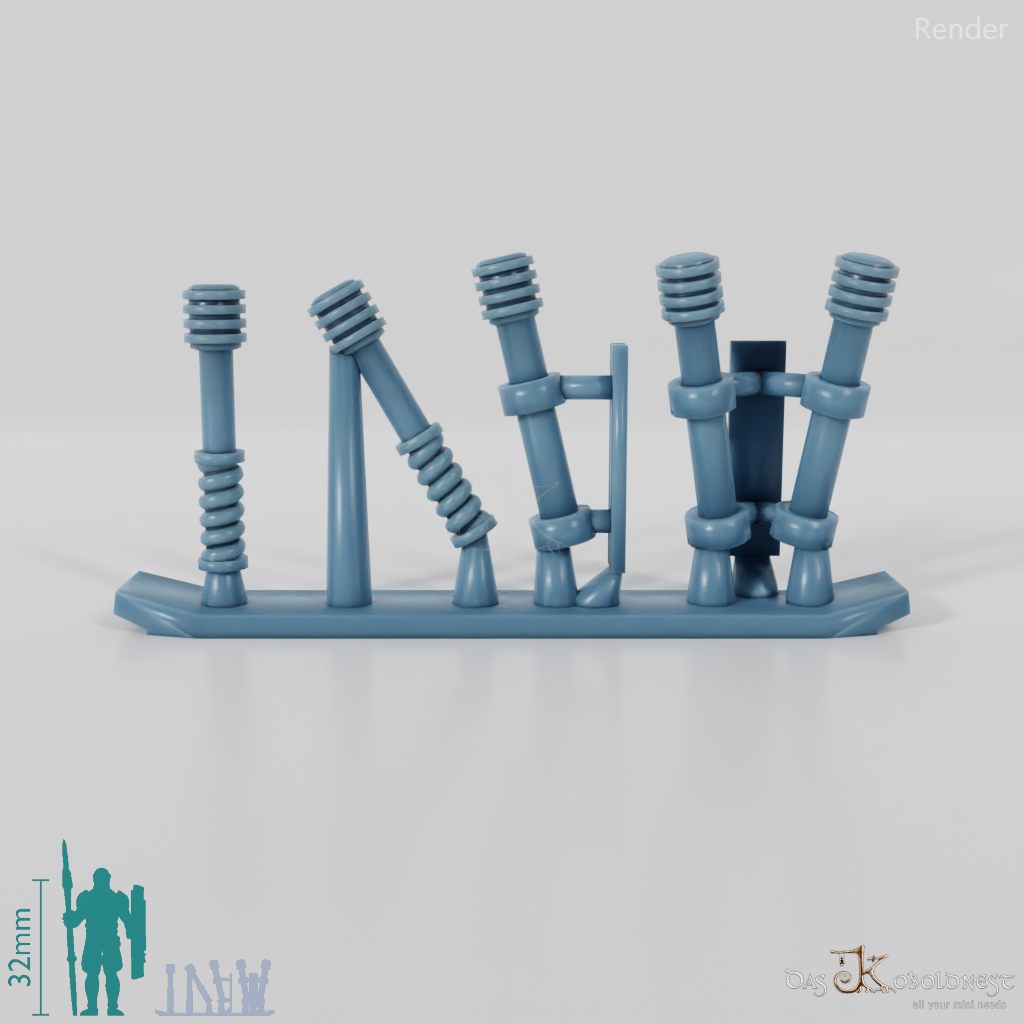 Vier verschiedene, erloschene Fackeln mit und ohne Wandhalterung Die Modelle werden in zusammenhängendem Rahmen geliefert und müssen beispielsweise mit einem Bastelmesser abgetrennt werden. Model by Pellinor1, licensed under CC BY 4.0