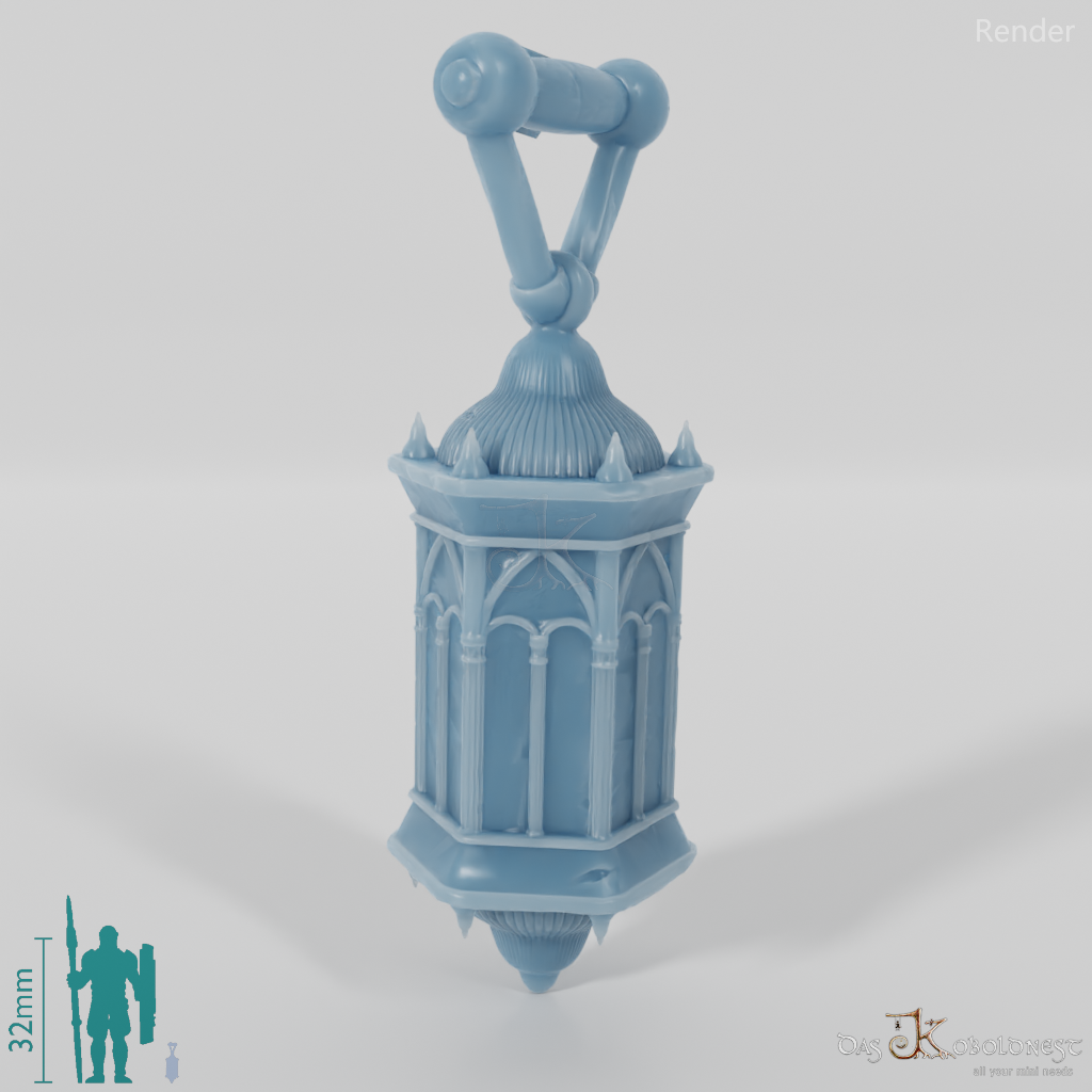 Kleine, verzierte Handlaterne mit Griff. Das Modell kann beliebig mit allen modularen Körpern der Reihe "Die Armee der Toten" kombiniert werden. Im Customizer von The Printing Goes Ever On kannst du dir selbst eine Vorschau deiner modularen Geisterarmee erstellen und die perfekten Kombinationen für dich finden.