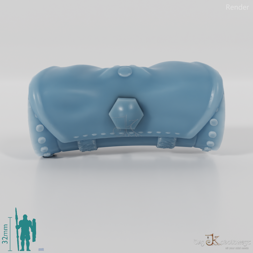 Kleine lederne Gürteltasche mit Metallschnalle. Das Modell kann beliebig mit allen modularen Modellen der Reihe "Zusammenruf der Zwerge" kombiniert werden. Im Customizer von The Printing Goes Ever On kannst du dir selbst eine Vorschau deiner modularen Zwerge erstellen und die perfekten Kombinationen für dich finden.