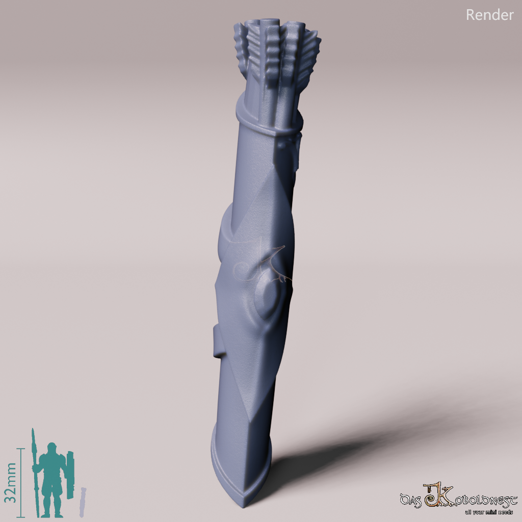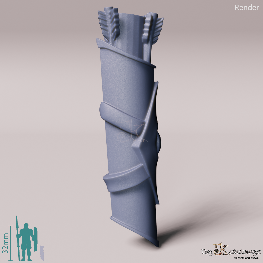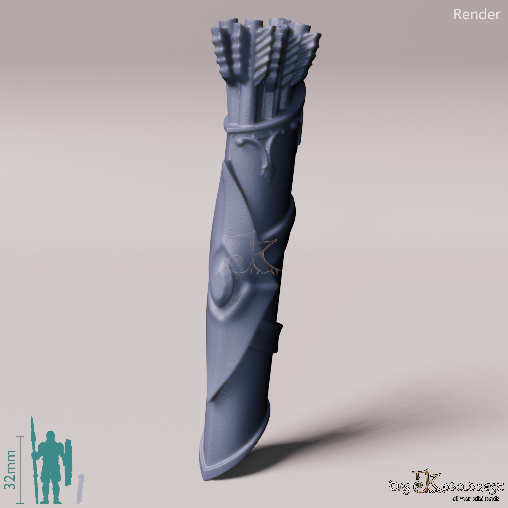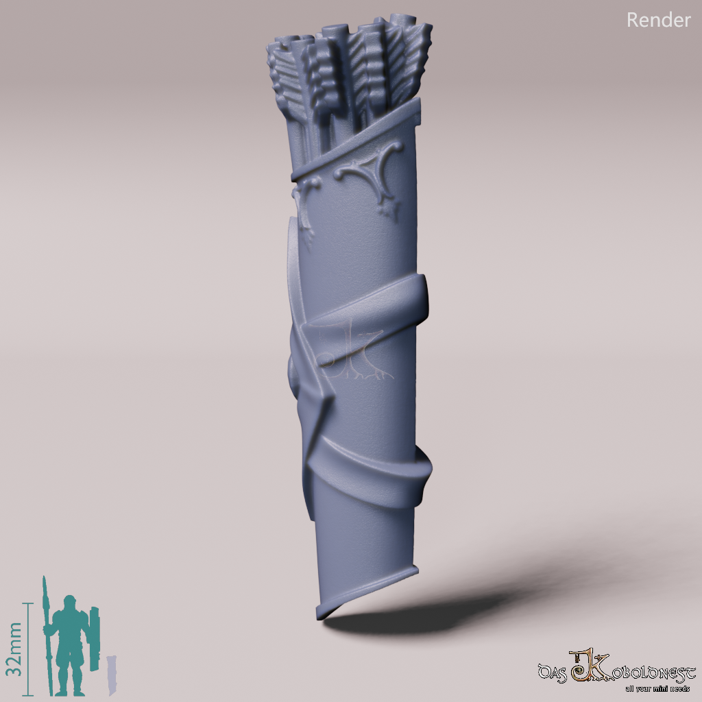 Verzierter, elfischer Pfeilköcher. Das Modell kann beliebig mit allen modularen Modellen der Reihe "Die Elfen versammeln sich" kombiniert werden.