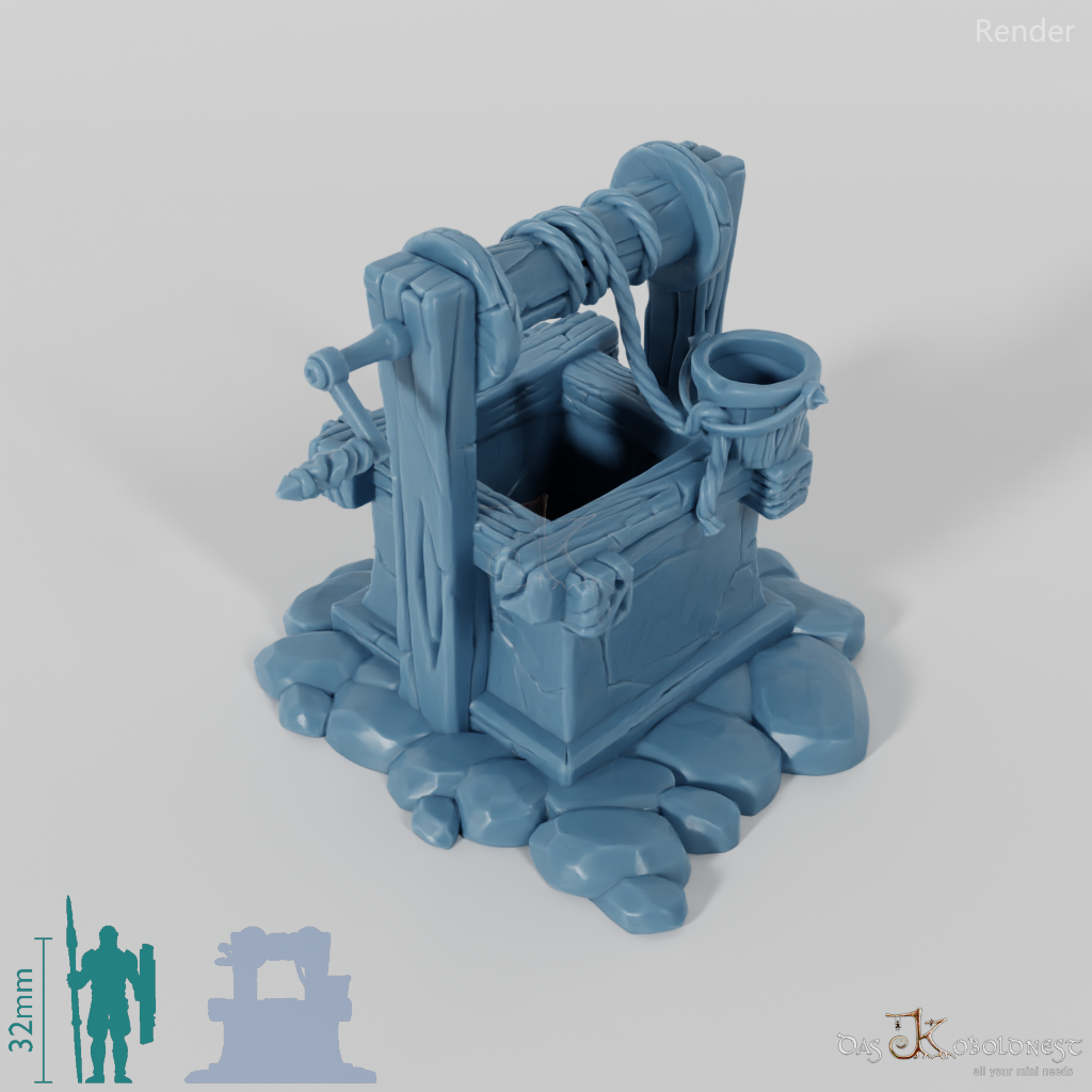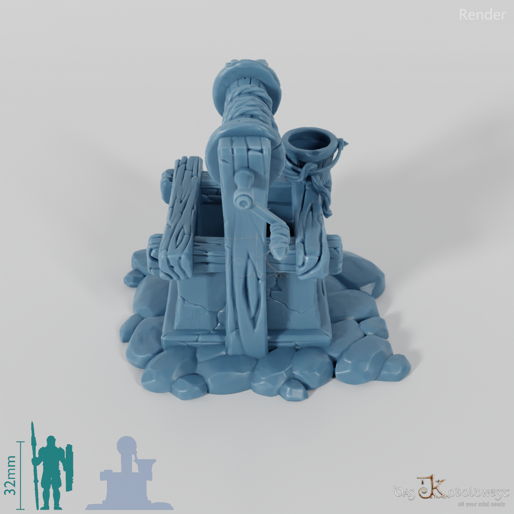 Kleiner Brunnenschacht mit Eimer und Holzkurbel
