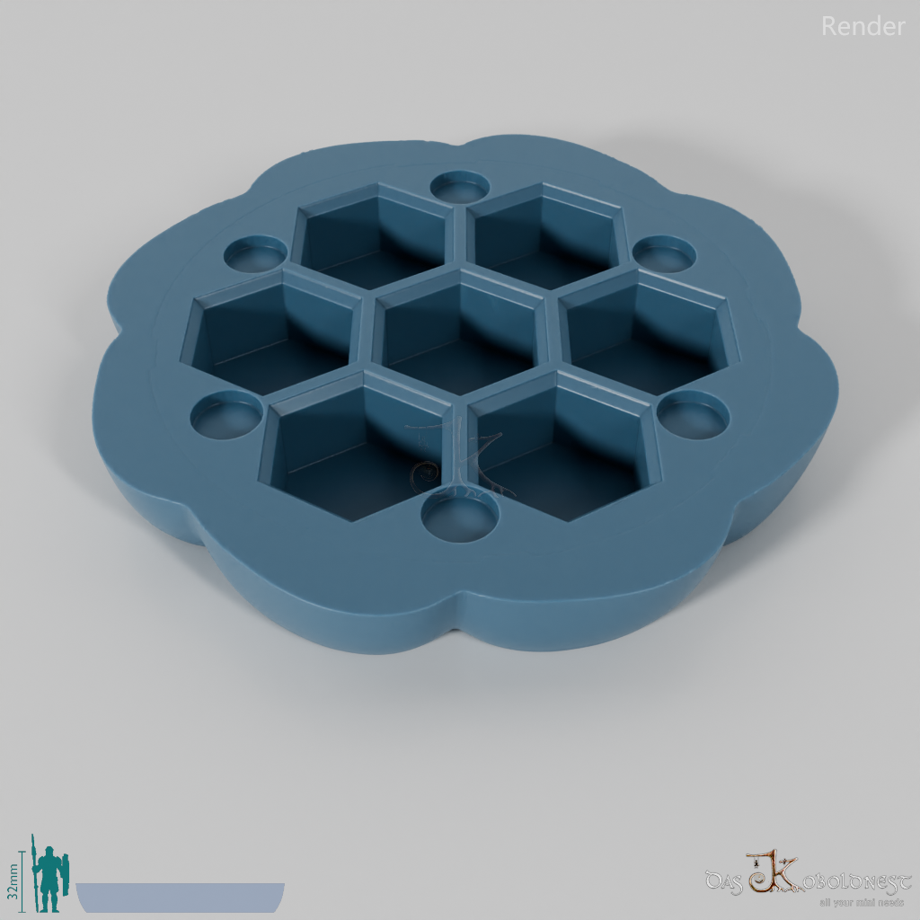 Die Box hat sieben sechseckige Fächer, die deine Würfel sicher und geschützt an Ort und Stelle halten. Deckel und Box werden von insgesamt 12 Scheibenmagneten zusammengehalten, wodurch die Würfel schnell ausgepackt und genau so schnell wieder verstaut sind.