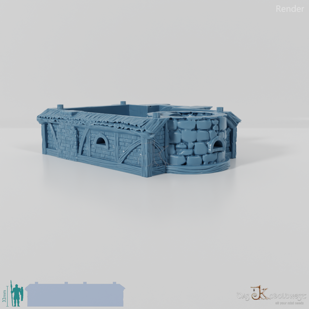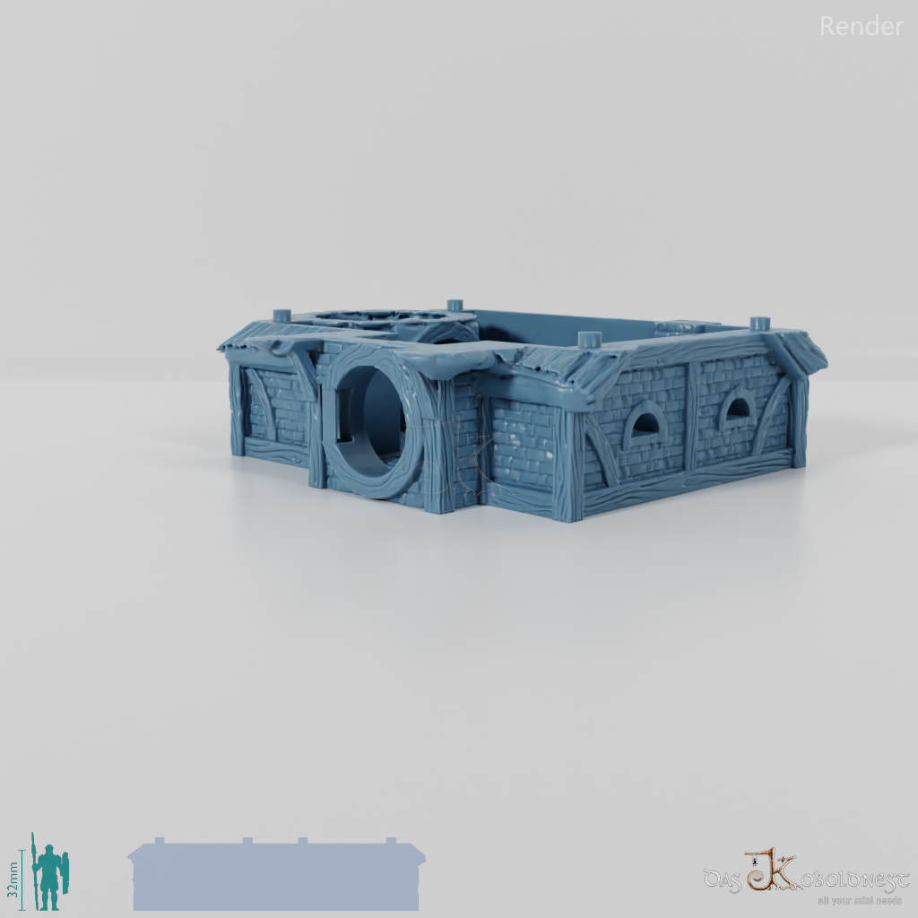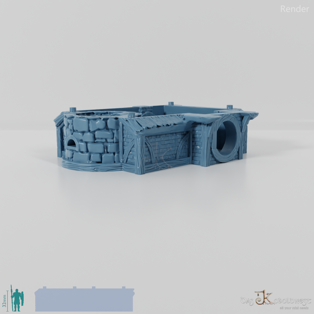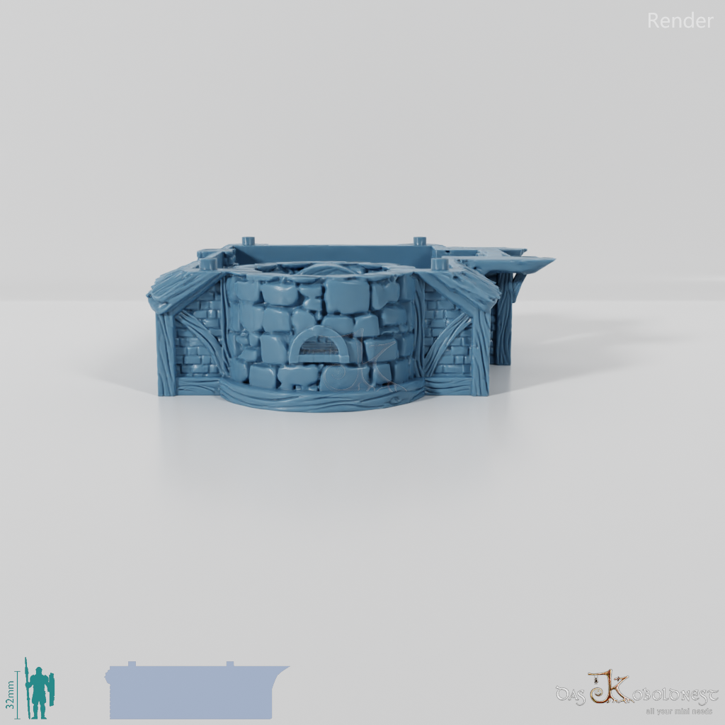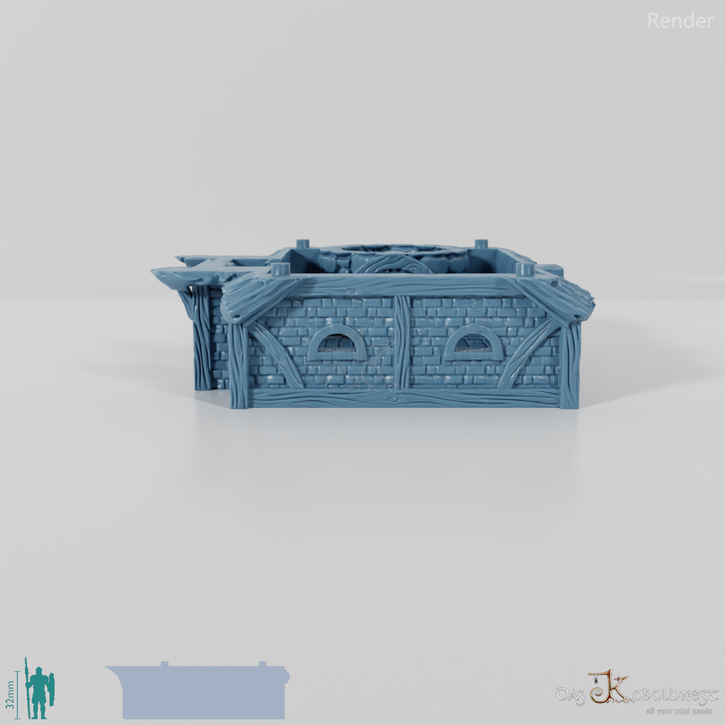 Aus Naturstein und Ziegeln gemauerte Windmühle in Halblinggröße mit runder Tür, frei rotierbarem Turm und rotierbaren Flügeln. Die Tür kann mit einem dünnen Holz- oder Metallstab so befestigt werden, dass sie auf- und zuschwingen kann. Dach und Turm sind abnehmbar und die Mühle somit voll bespielbar. Der Holzboden der Mühle hat im 32 mm Maßstab eine Feldgröße von genau einem Zoll. Maße 32 mm Maßstab: Grundfläche 12,4 x 14,4 cm, Höhe ohne Turm 9,1 cm, mit Turm 15,3 cm Maße 28 mm Maßstab: Grundfläche 10,8 x 12,6 cm, Höhe ohne Turm 8 cm, mit Turm 13,4 cm Model by DarkRealms