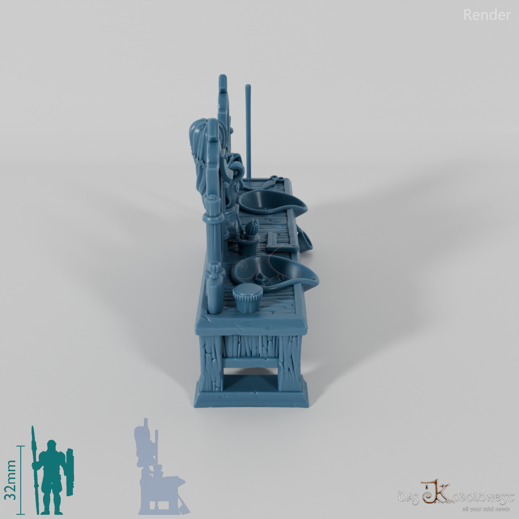 Der Standardmaßstab aller Modelle im Koboldnest ist 1:56 und entspricht der Augenhöhe eines aufrecht stehenden Menschen von 32 mm als Größenreferenz.