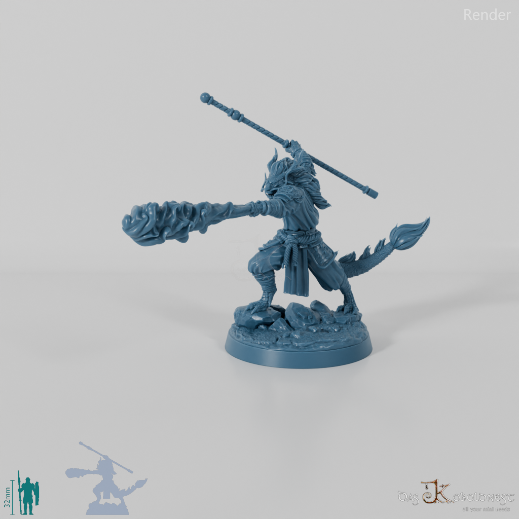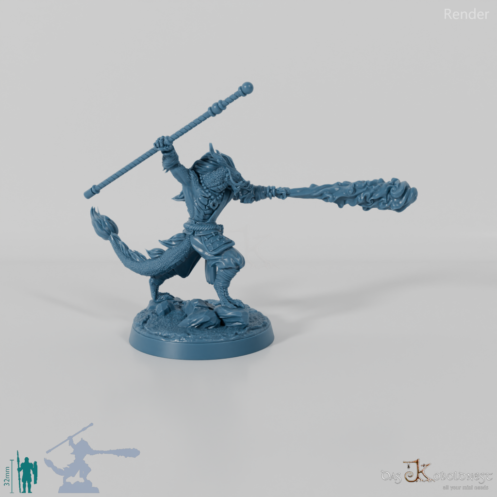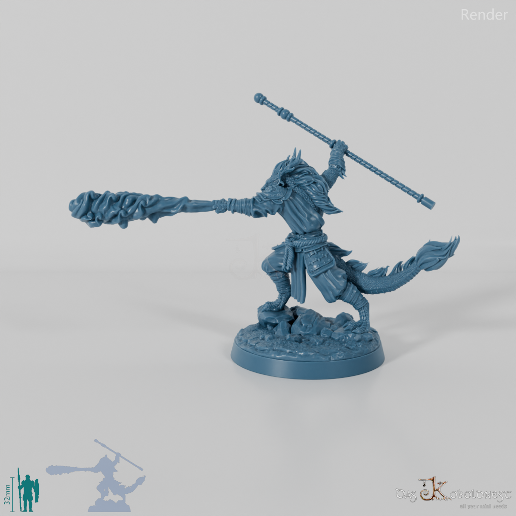Stürz dich in eine Welt, in der Tradition auf Magie trifft, mit dem atemberaubenden Drachenvolk-Mönch aus der Reihe Master of the Elements. Dieses Modell, das den Spirit ostasiatischer Mythen atmet, ist eine beeindruckende Fusion aus kriegerischer Eleganz und roher Elementarkraft. Vorstellbar als ein humanoider chinesischer Drache, dessen eindrucksvolle Panzerung an Schultern und Beinen nicht nur Schutz bietet, sondern auch Zeugnis seiner meisterhaften Kampfkunst ablegt. Seine Pose ist Ausdruck purer Energie: Während er mit einer Hand geschickt einen Kampfstab hält, schleudert er mit einer nach vorne schnellenden Bewegung einen brennenden Feuerball aus der anderen. Die Wahl liegt bei dir: Setze den Mönch auf eine szenische 40 mm Rundbase, um ihm Stabilität und Präsenz auf dem Schlachtfeld oder deinem Diorama zu verleihen. Oder wähle das Modell ohne Base, um ihm Flexibilität in deiner Darstellung zu ermöglichen. Für alle Anhänger von ostasiatisch inspirierten Settings und jene, die den Zauber der Elemente lieben, ist der Drachenvolk-Mönch eine Bereicherung jeder Sammlung. Lass ihn das Feuer in deinen Spielen entfachen und füge diesem Kriegermagier deiner Armee hinzu! Zögere nicht und hol dir diesen fesselnden Kombattanten aus einer Welt, in der die Macht der Elemente und die Kunst des Kampfes eins werden. Mit dem Drachenvolk-Mönch erlebst du epische Geschichten voller Magie und Heldentum.
