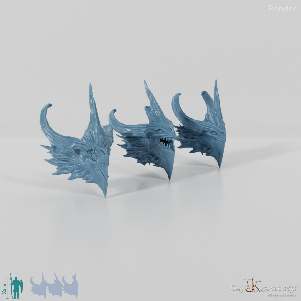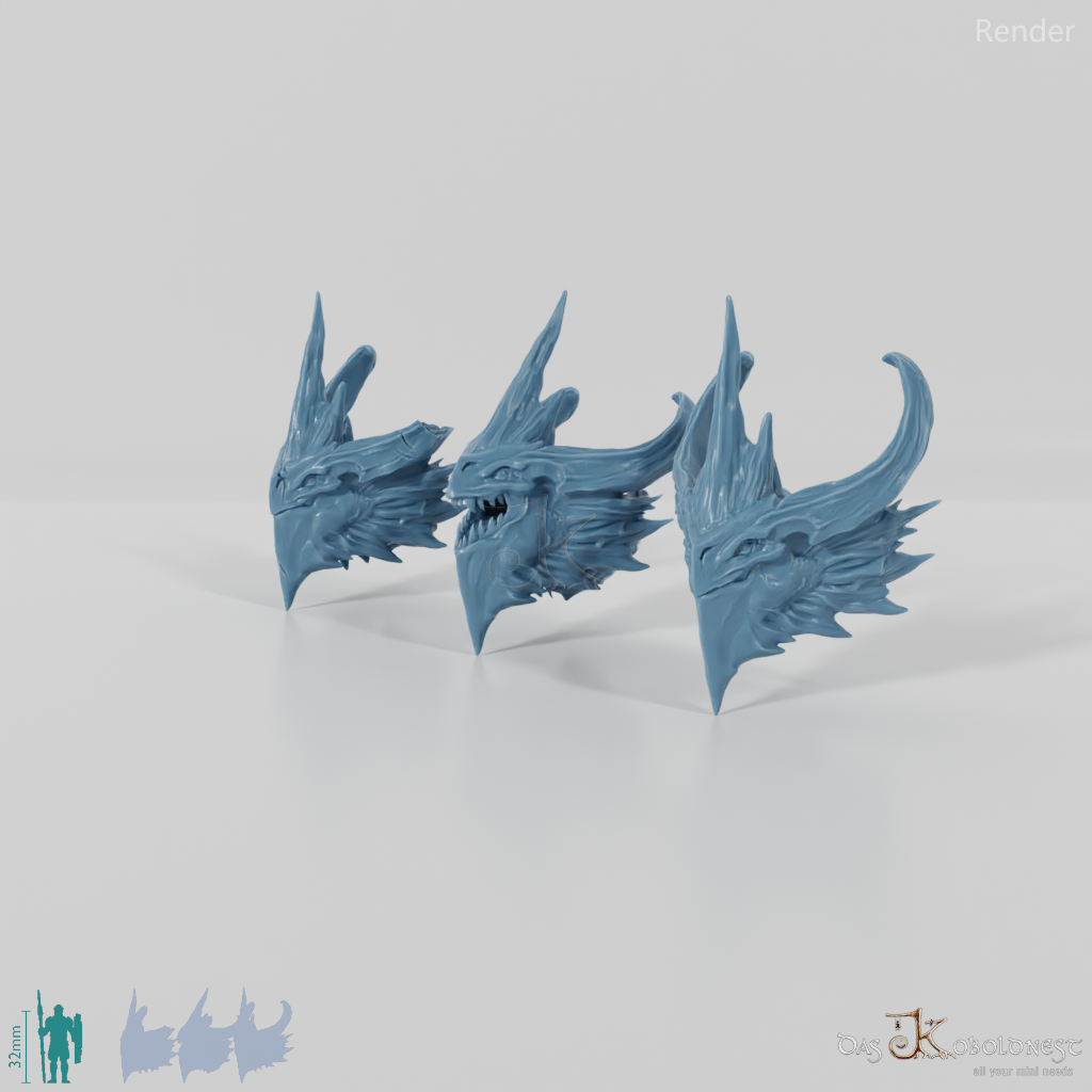 Modell wird mit drei verschiedenen Köpfen (geschlossenes Maul, offenes Maul und geschlossenes Maul mit Kampfnarben), zwei verschiedenen rechten Vorderbeinen (mit und ohne Kampfnarben) und mit Feueratem geliefert.