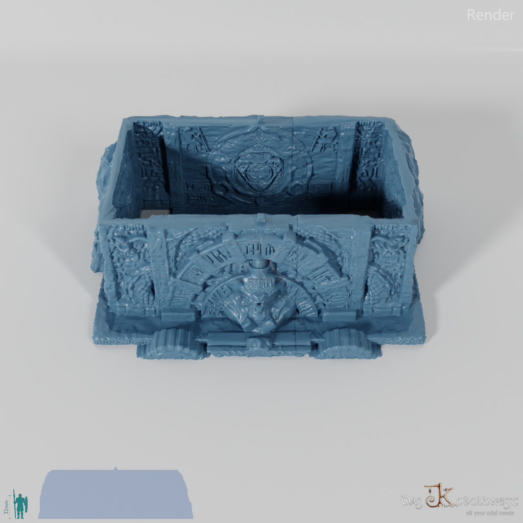 Große Gruft, die mit Hieroglyphen und Symbolen übersät ist. Die Gruft hat zwei Etagen und ist voll bespielbar