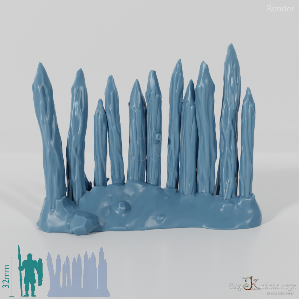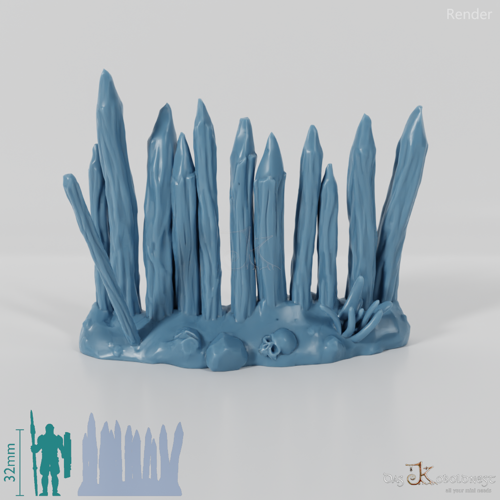 Palisadenstück aus in den Boden gerammten, angespitzten Holzstämmen.