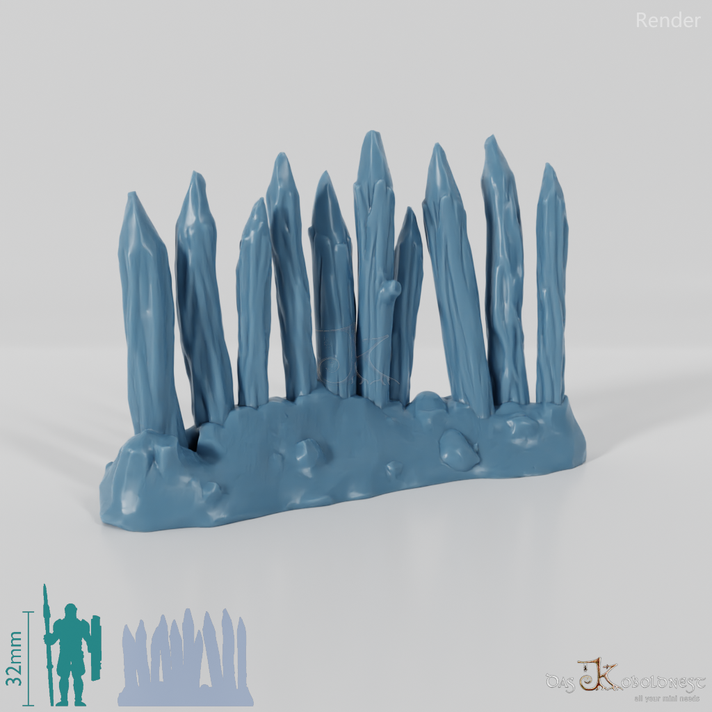 Palisadenstück aus in den Boden gerammten, angespitzten Holzstämmen.