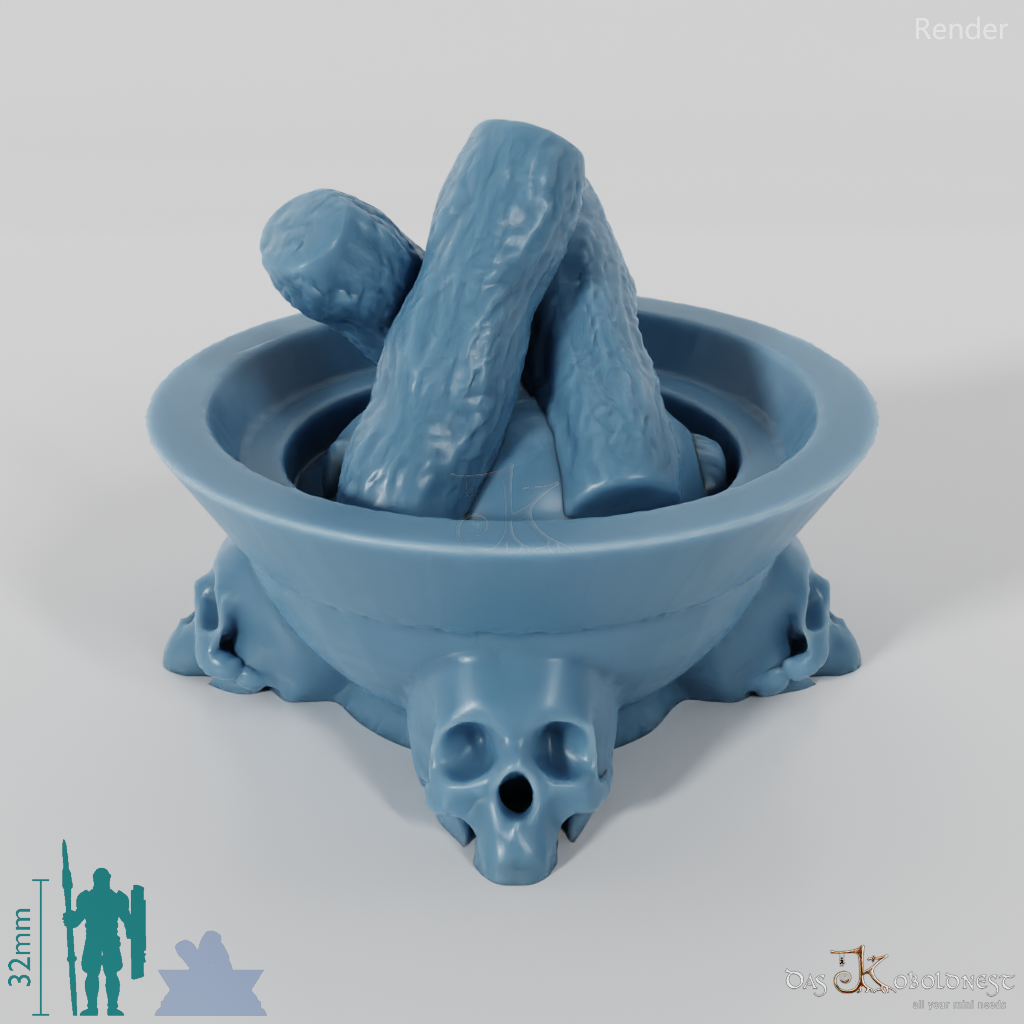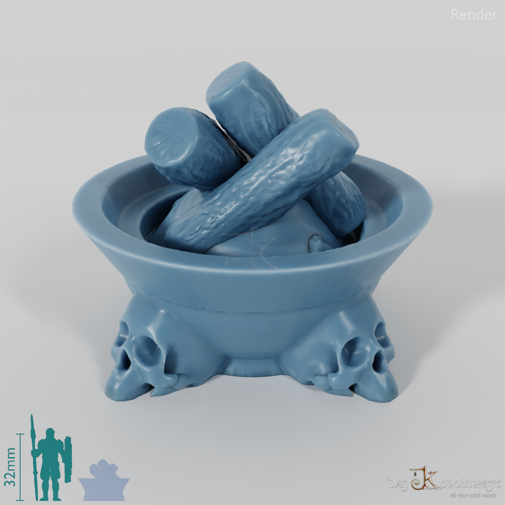 Metallene Feuerschale, die mit Sand und Holzscheiten gefüllt ist Modell: Braziers by tshenry1, lizenziert unter CC BY 3.0.