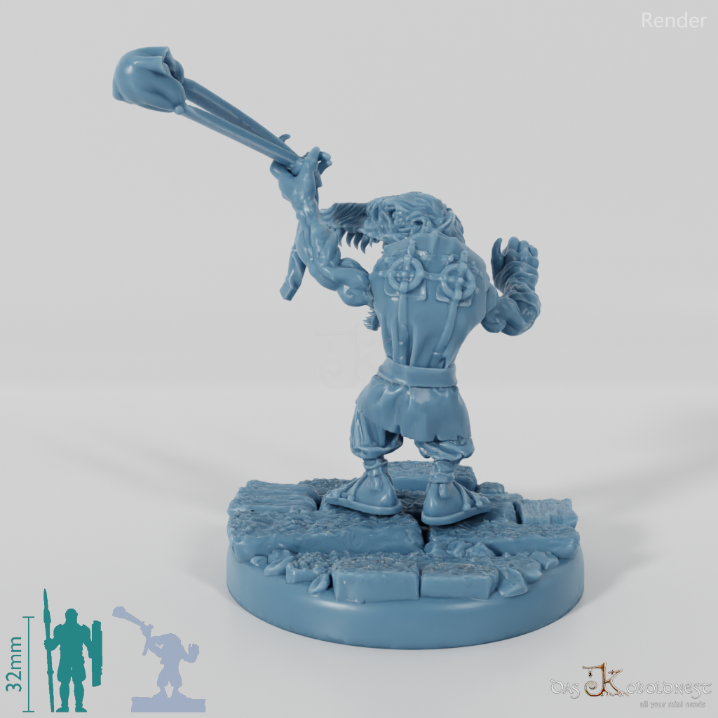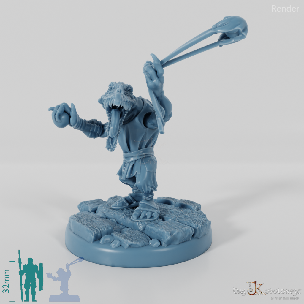 Gerüsteter und bewaffneter Goblin mit Fernkampfwaffe. Kopf und Waffe(n) des Modells sind modular und können beliebig mit allen Goblinmodellen von Asgard Rising kombiniert werden. Modell wahlweise mit szenischer 25mm-Rundbase verfügbar