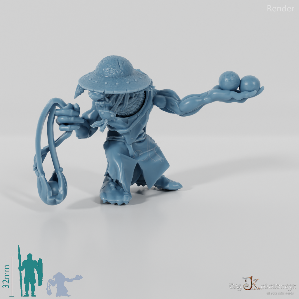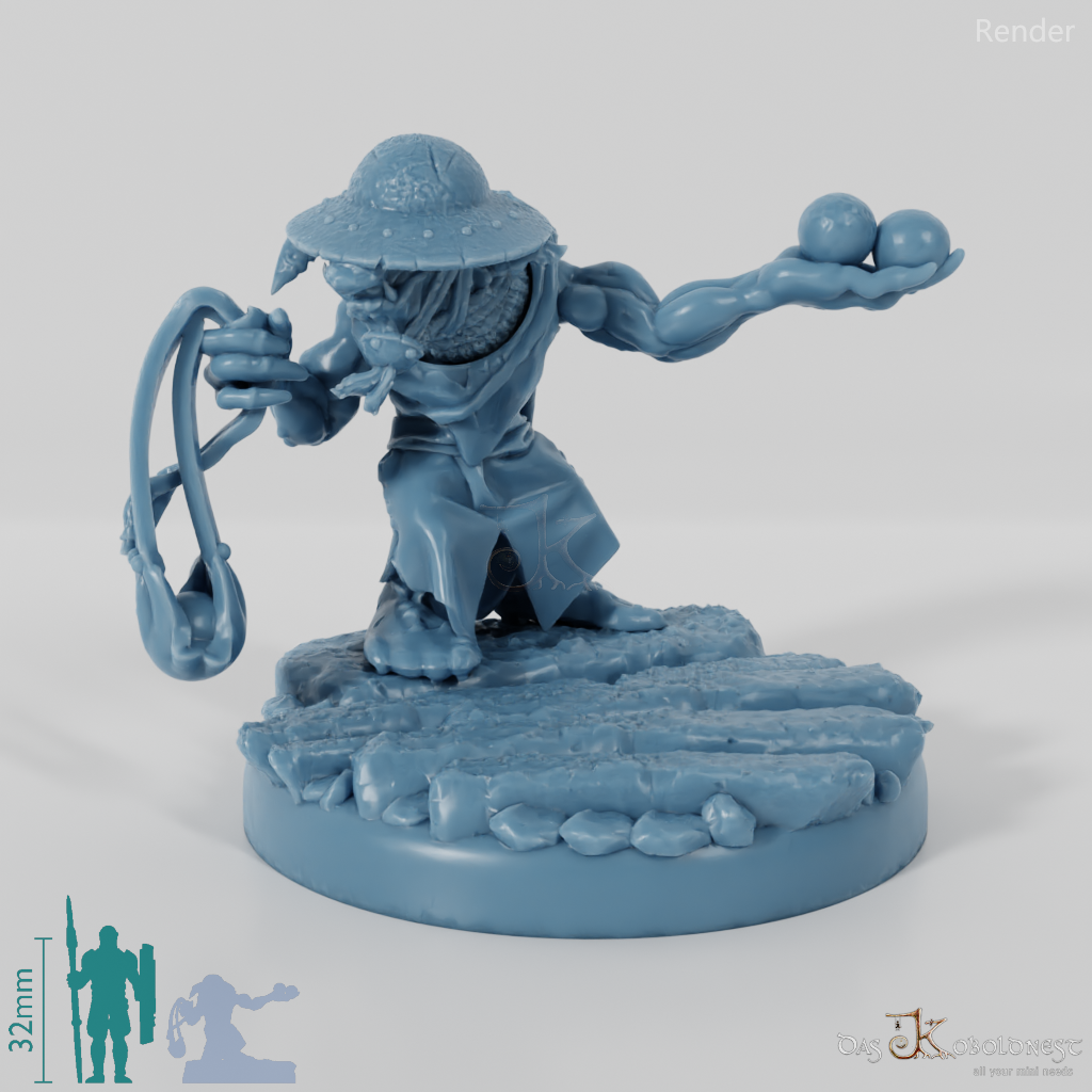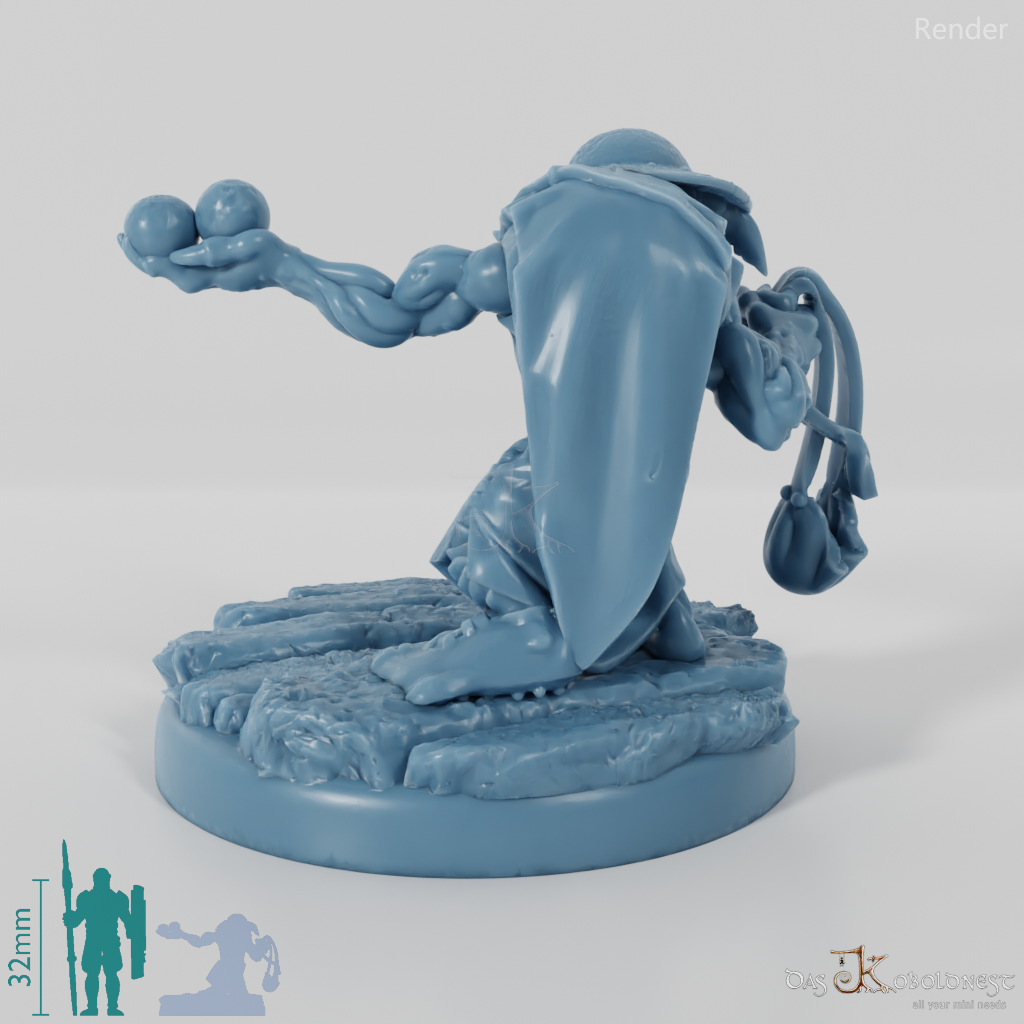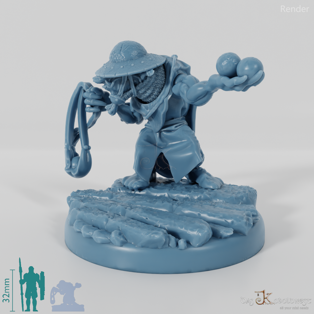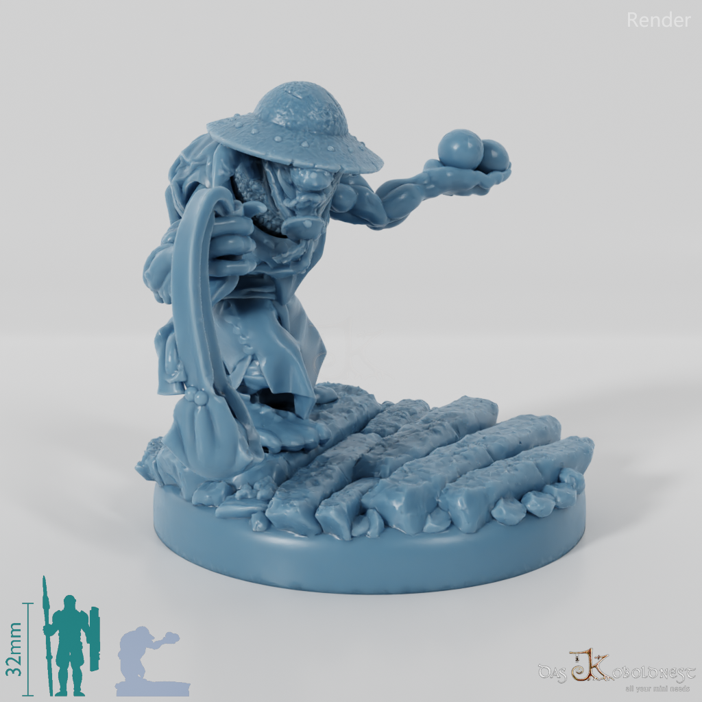 Gerüsteter und bewaffneter Goblin mit Fernkampfwaffe. Kopf und Waffe(n) des Modells sind modular und können beliebig mit allen Goblinmodellen von Asgard Rising kombiniert werden. Modell wahlweise mit szenischer 25mm-Rundbase verfügbar