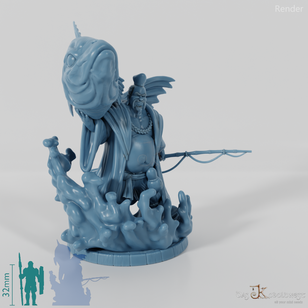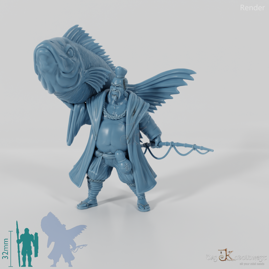 Kami des Fischfangs und des Glücks und einer der sieben Glücksgottheiten des Shintō, der mit einem verschmitzten Lächeln eine Angel hält
