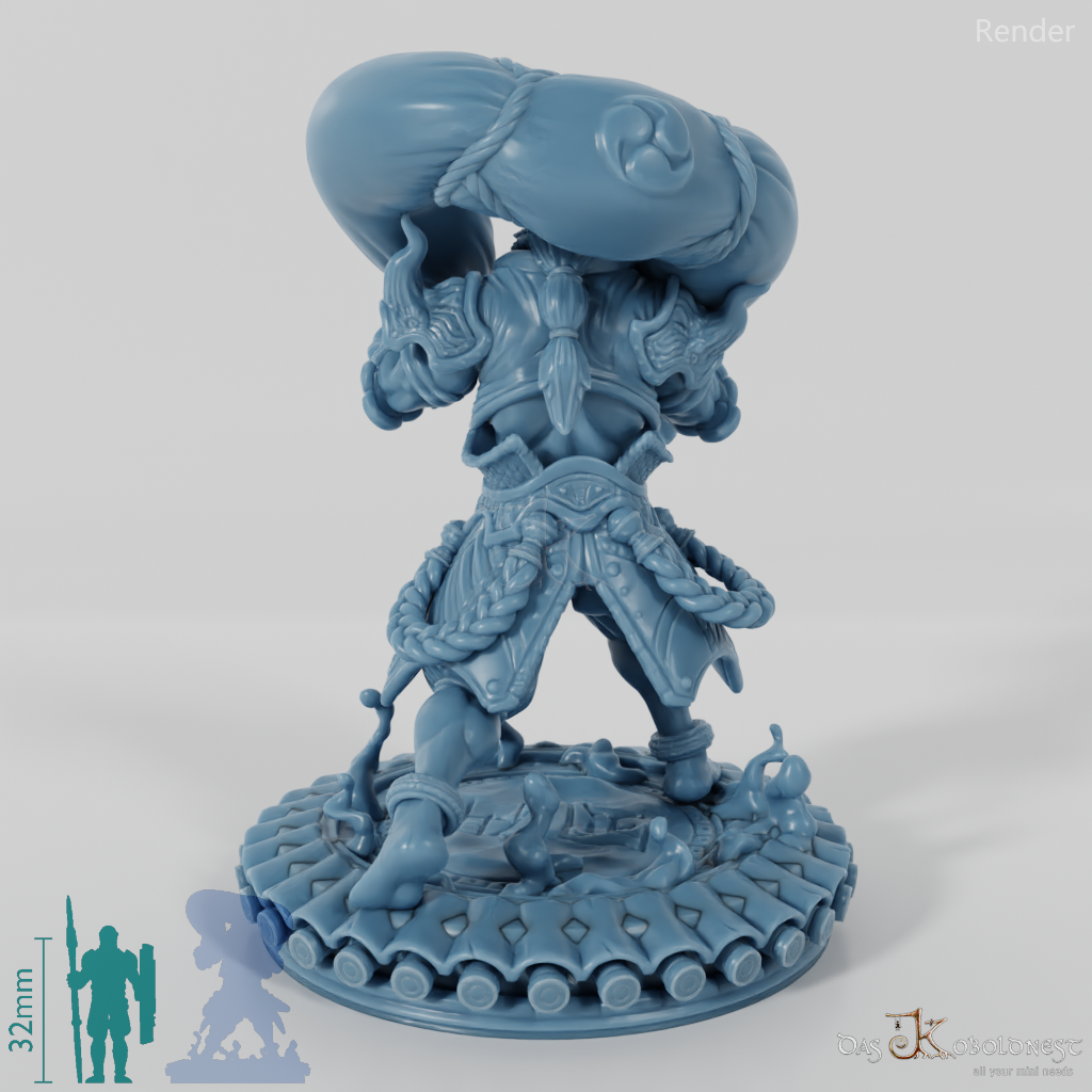 Hoher Kami des Windes mit dämonischem Antlitz, der einen verschnürten Sack voller Stürme trägt