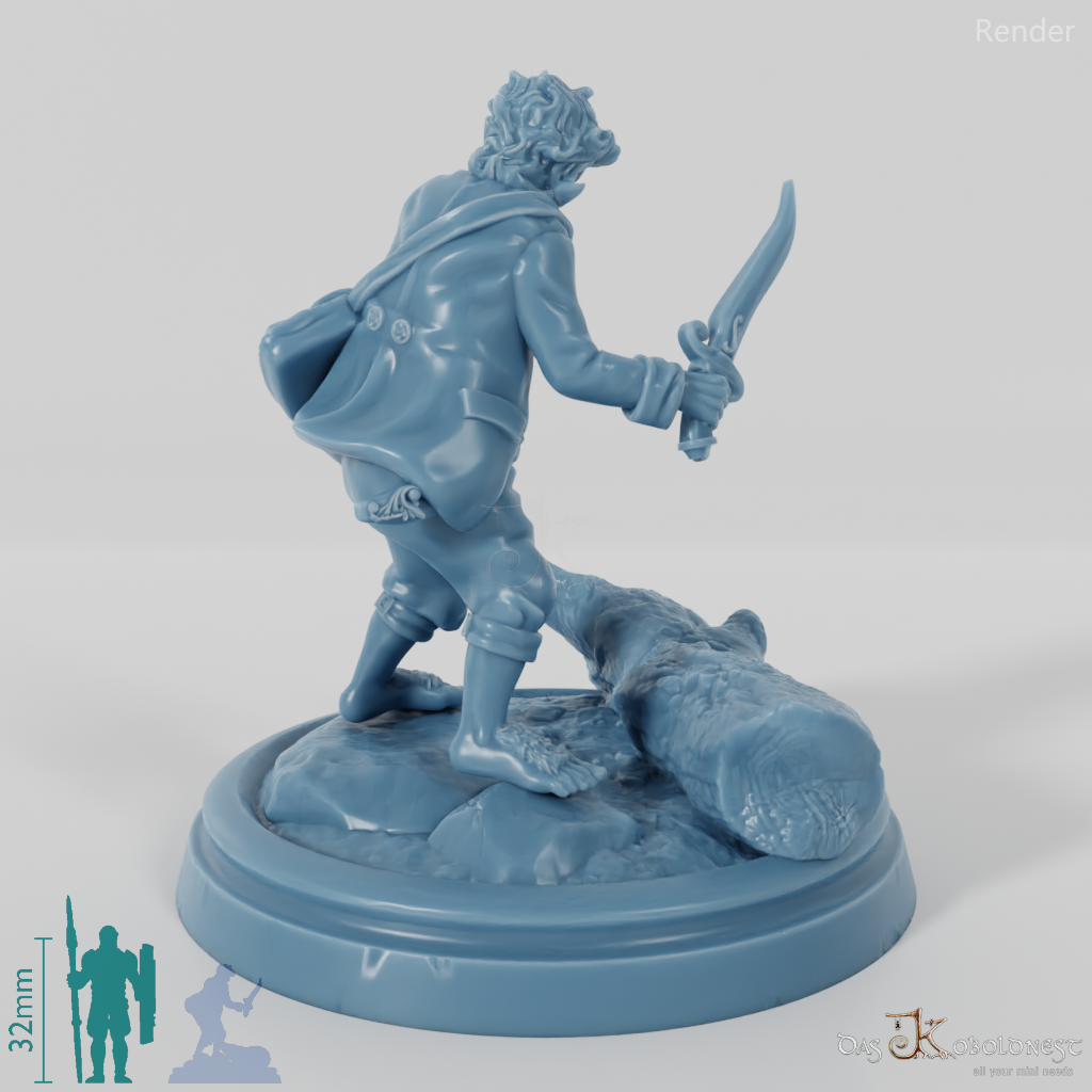 Falco, Halbling-Schatzträger in Kampfhaltung