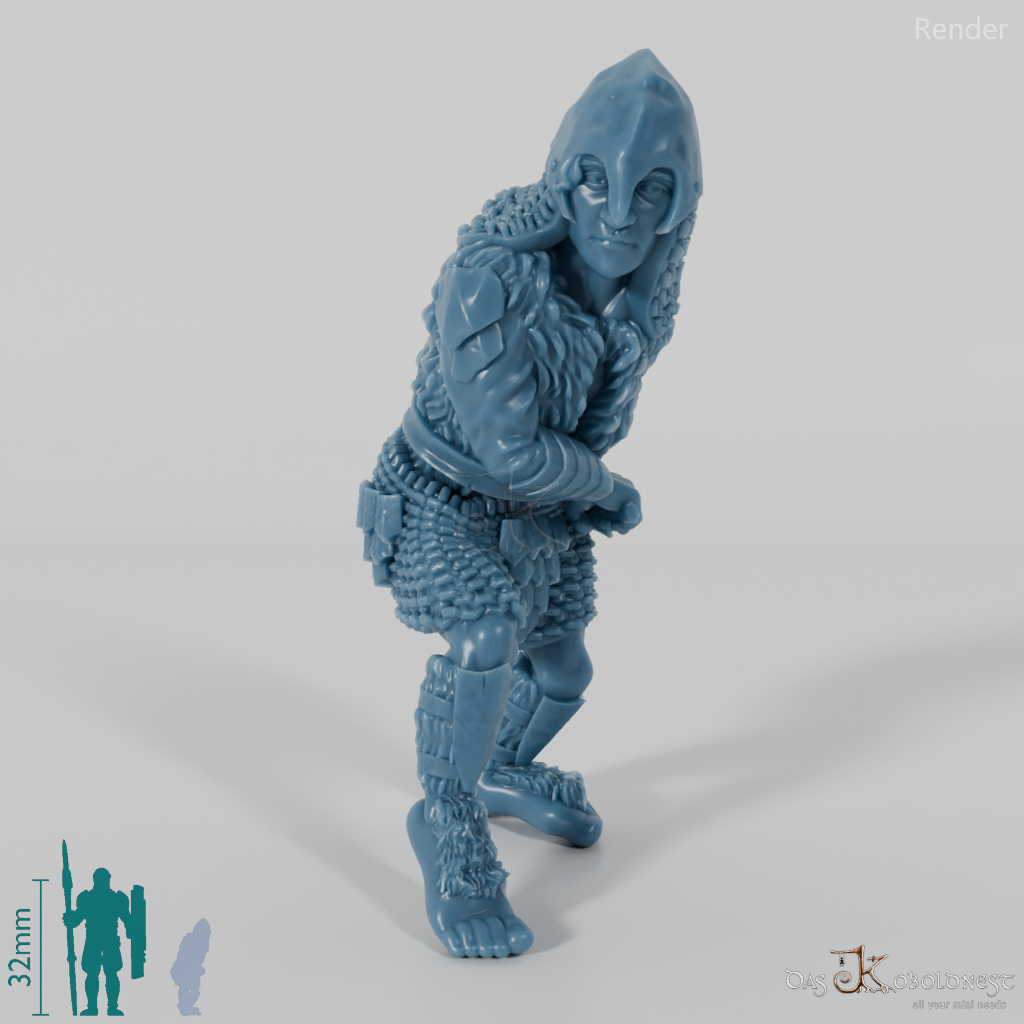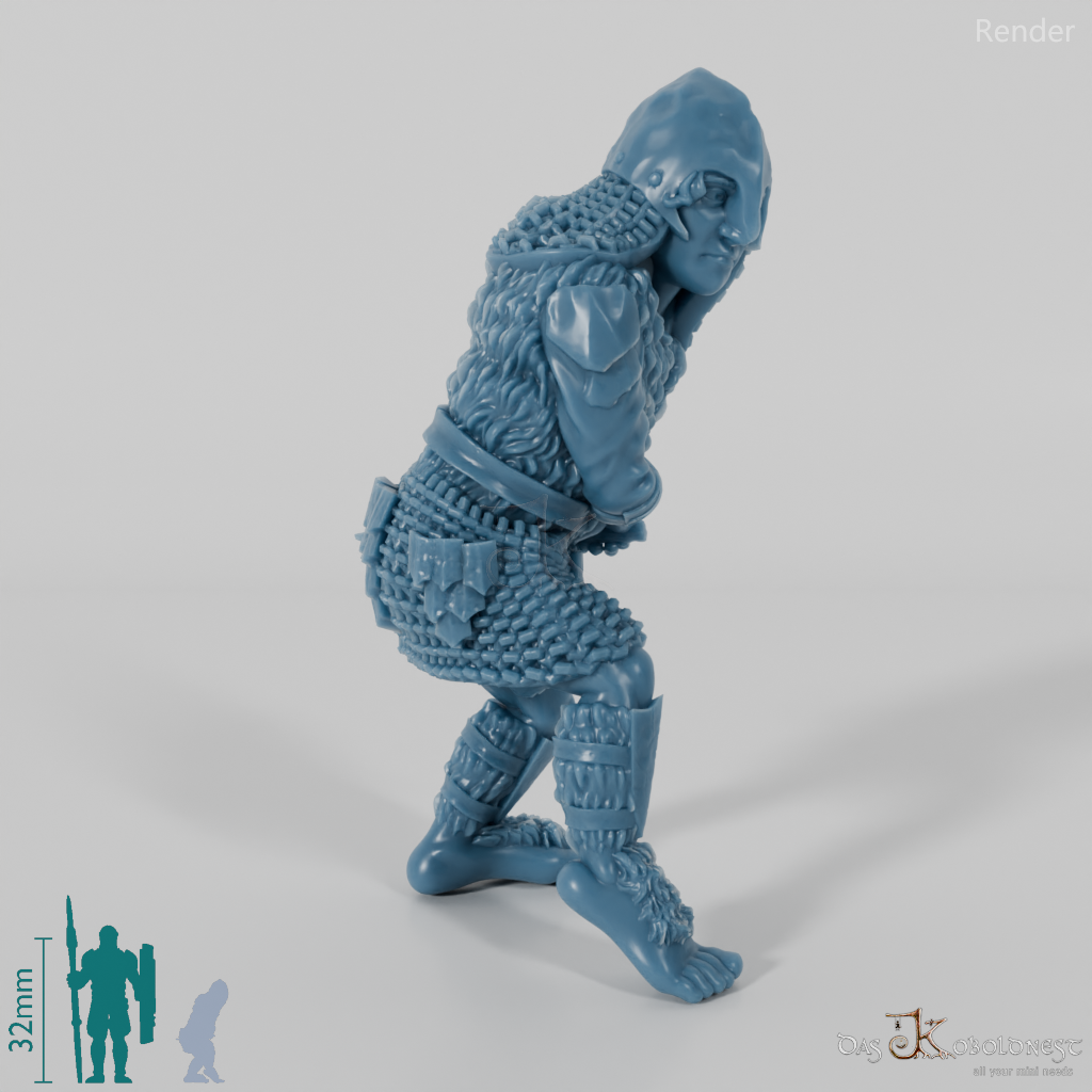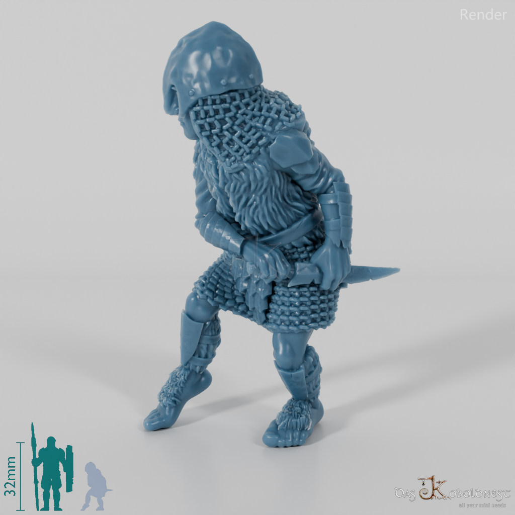 Entdecke Falco, den gerissenen Halbling-Schatzträger, dessen Cleverness so groß ist wie seine Abenteuerlust. Geschickt tarnt er sich in einer Orkrüstung, die seine wahre Identität verbirgt und ihm ermöglicht, unbemerkt zu bleiben. Seine Hand ruht vorsichtig, aber entschlossen am Schwert an seiner Seite – ein Zeichen seiner Bereitschaft, sich zu verteidigen, sollte seine Tarnung auffliegen. Falco ist nicht nur ein Meister der Verkleidung, sondern auch ein geschickter Kämpfer, der in der Welt der Halblinge und darüber hinaus für seine Abenteuer bekannt ist.