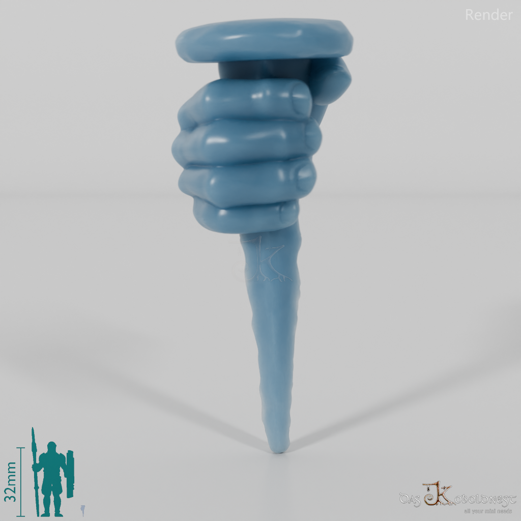Halblinghand, die einen großen Eisennagel hält. Das Modell kann beliebig mit allen modularen Körpern der Reihe "Greenshire Vigilantes" kombiniert werden. Im Customizer von The Printing Goes Ever On kannst du dir selbst eine Vorschau deiner modularen Halblingarmee erstellen und die perfekten Kombinationen für dich finden. Modell wahlweise mit rechter oder linker Hand verfügbar.