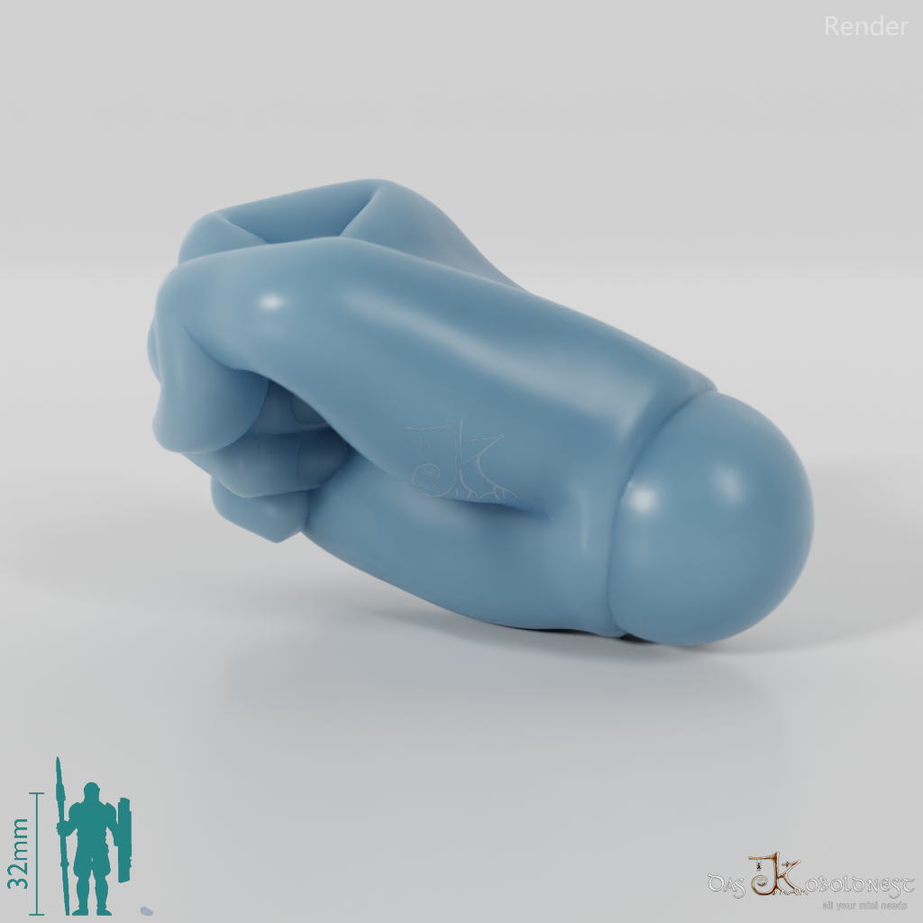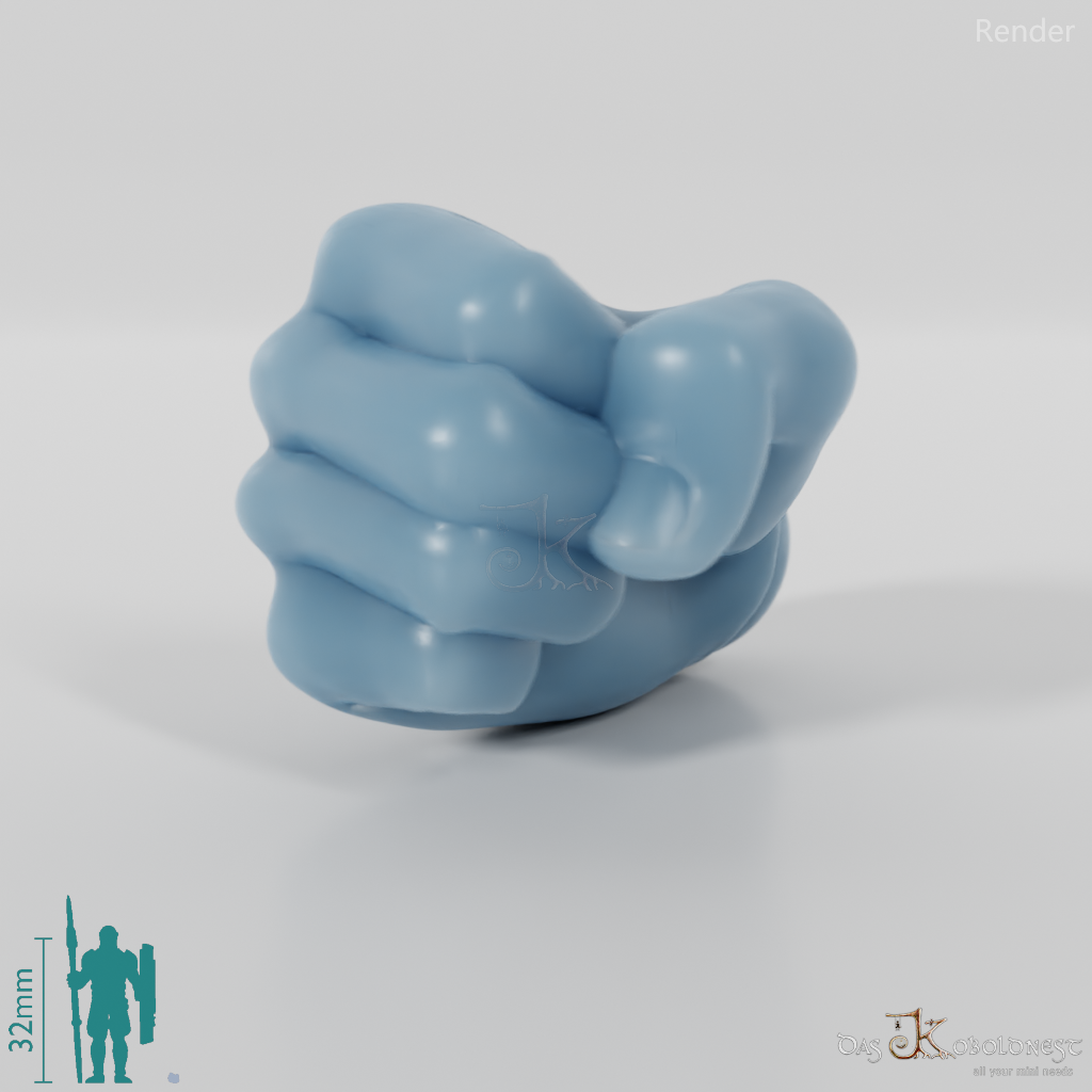 Menschliche, zur Faust geballte Hand. Das Modell kann beliebig mit allen modularen Körpern der Reihe "Ruf zu den Waffen" kombiniert werden. Im Customizer von The Printing Goes Ever On kannst du dir selbst eine Vorschau deiner modularen Menschen von Gonthan erstellen und die perfekten Kombinationen für dich finden. Modell wahlweise als rechte oder linke Hand verfügbar.