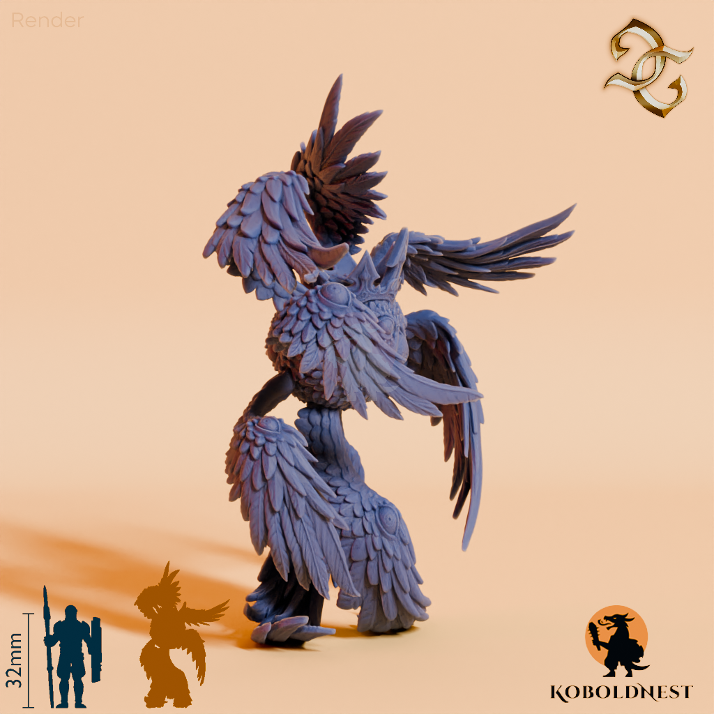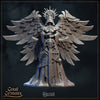 Ehrfurchterweckender Himmelsbote mit vier gefiederten Flügelpaaren um einen kugelförmigen Körper mit sieben Augen und großer Krone. Alle "Celestial Gambit" Figuren von Great Grimoire sind als alternative Schachfiguren designt worden.