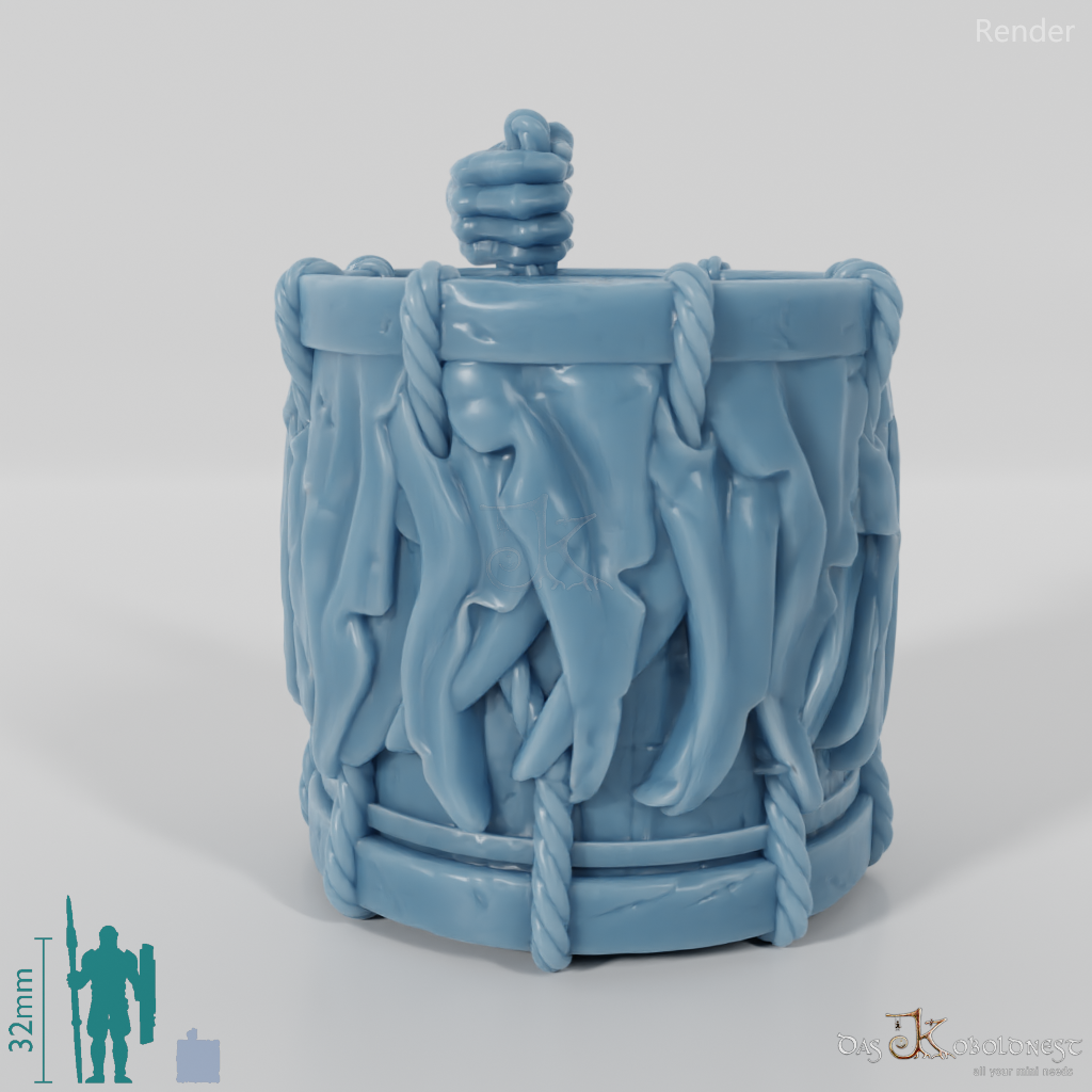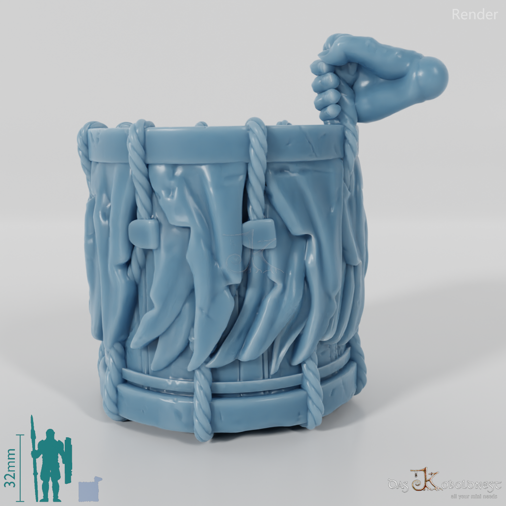 Abgewetzte, zerkratzte Trommel, die von einer ausgemergelten Geisterhand gehalten wird. Das Modell kann beliebig mit allen modularen Körpern der Reihe "Die Armee der Toten" kombiniert werden. Im Customizer von The Printing Goes Ever On kannst du dir selbst eine Vorschau deiner modularen Geisterarmee erstellen und die perfekten Kombinationen für dich finden. Modell wahlweise mit rechter oder linker Hand verfügbar.