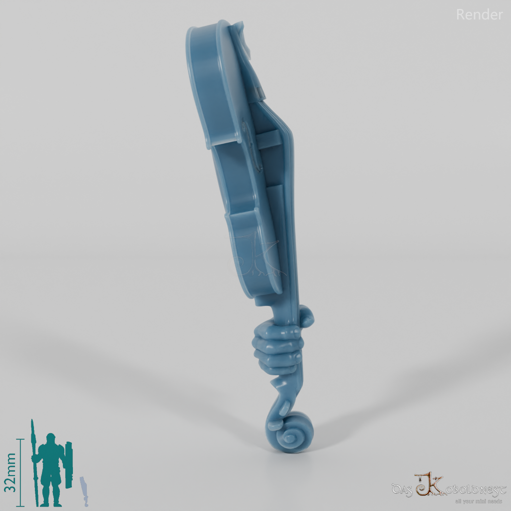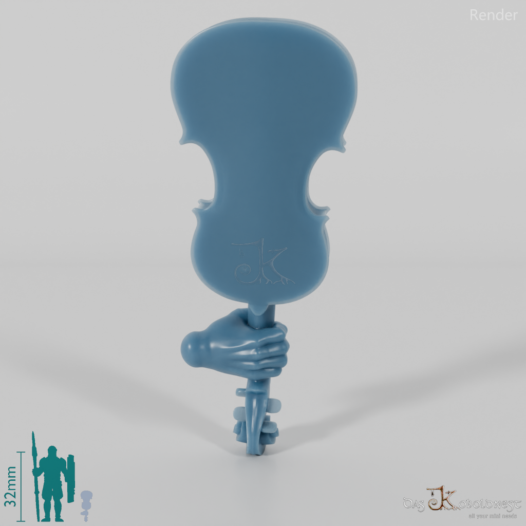 Kleine Geige, die von einer Halblinghand gehalten wird. Das Modell kann beliebig mit allen modularen Körpern der Reihe "Greenshire Vigilantes" kombiniert werden. Im Customizer von The Printing Goes Ever On kannst du dir selbst eine Vorschau deiner modularen Halblingarmee erstellen und die perfekten Kombinationen für dich finden. Modell wahlweise mit rechter oder linker Hand verfügbar.