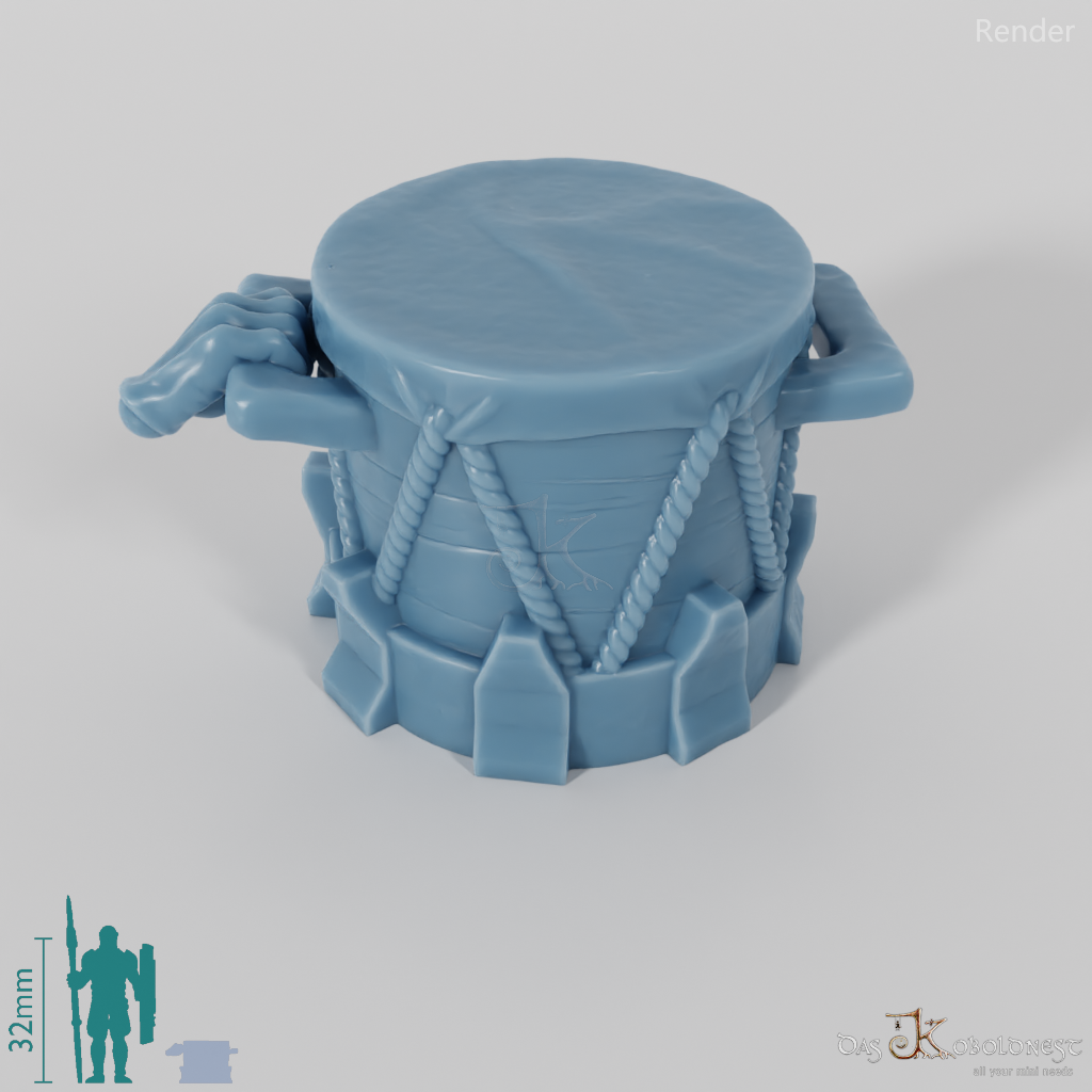 Fellbespannte Trommel, die von einer sehnigen Hand gehalten wird. Das Modell kann beliebig mit allen modularen Modellen der Reihe "Die kämpfenden Halborks" kombiniert werden. Im Customizer von The Printing Goes Ever On kannst du dir selbst eine Vorschau deiner modularen Halborks erstellen und die perfekten Kombinationen für dich finden. Außerdem kannst du im Customizer über den "Share"-Button einen individuellen Link für dein Modell erstellen und diesen direkt per Kontaktformular oder Mail an info@koboldnest.de mit uns teilen, sodass wir dein Wunschmodell mit allen zusammengehörenden Teilen direkt für dich produzieren können. Modell wahlweise mit rechter oder linker Hand an der Waffe verfügbar.