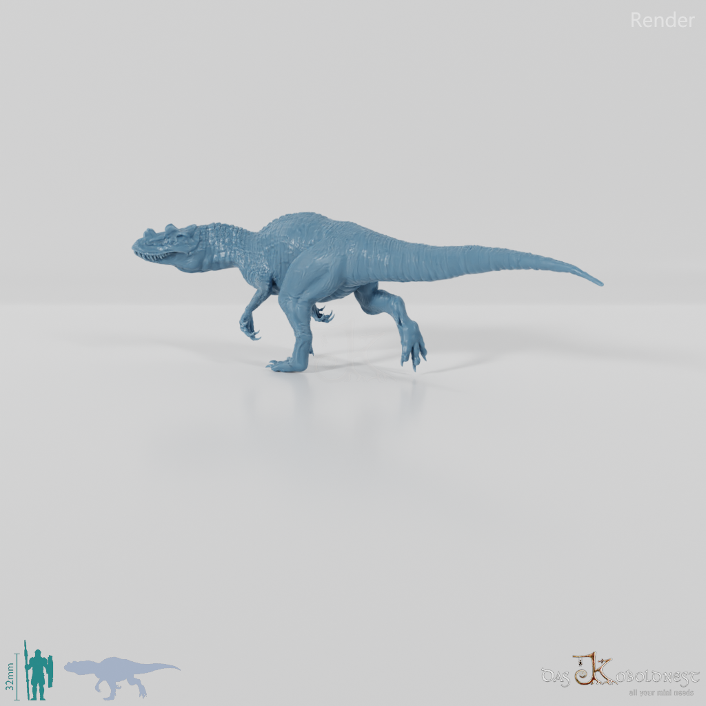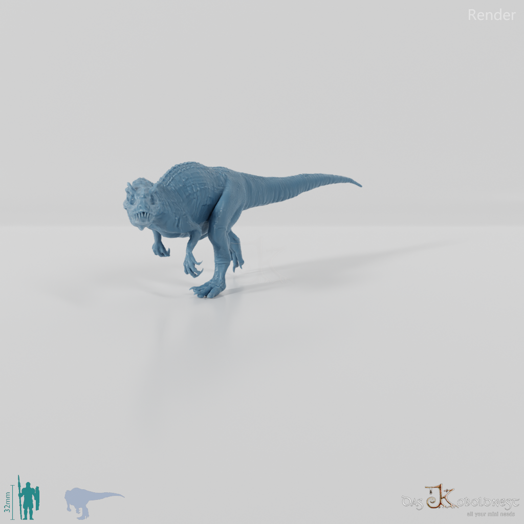 Mittelgroßer Raubsaurier aus dem Oberjura mit drei kleinen Hörnern auf dem Schädel