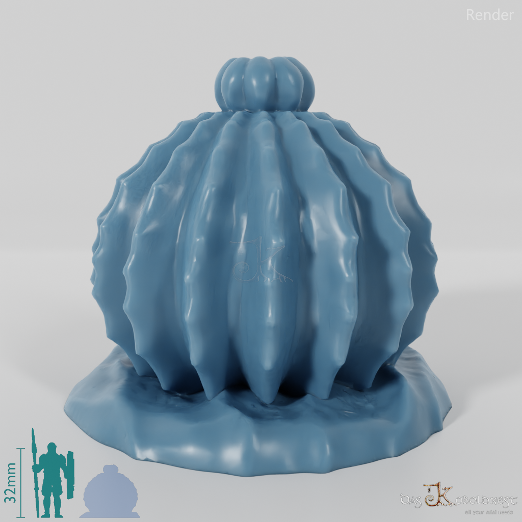 Runder Kaktus (Echinocactus grusonii) auf strukturierter Base mit 30mm Durchmesser.