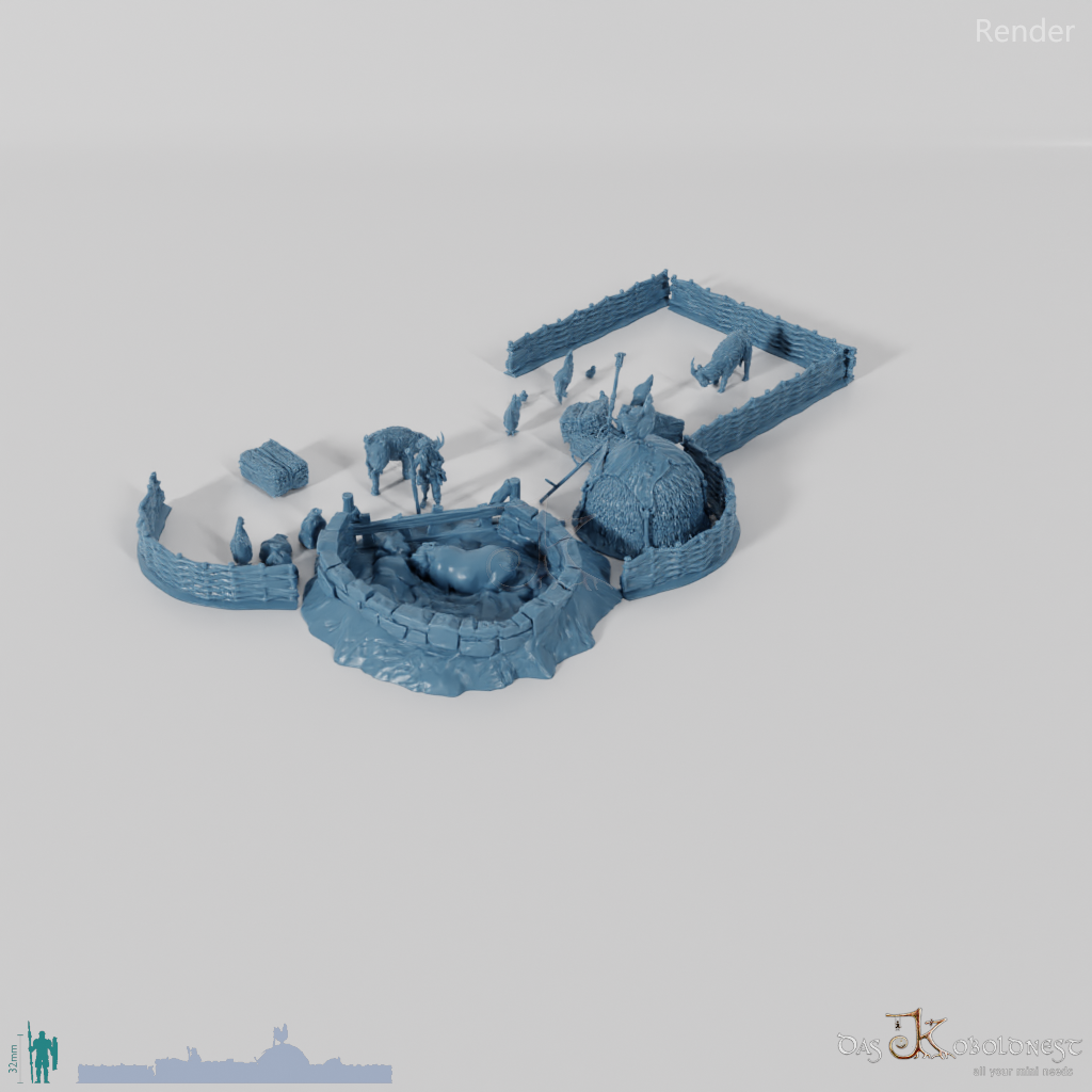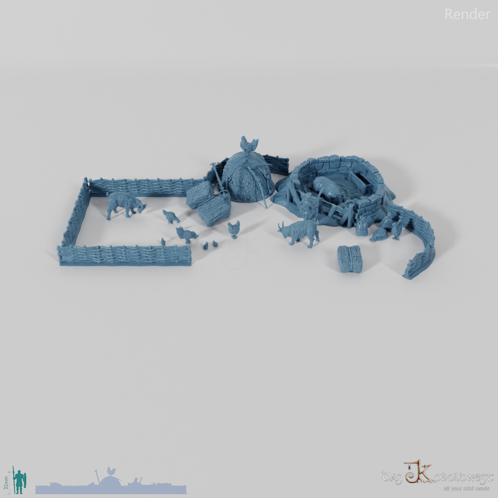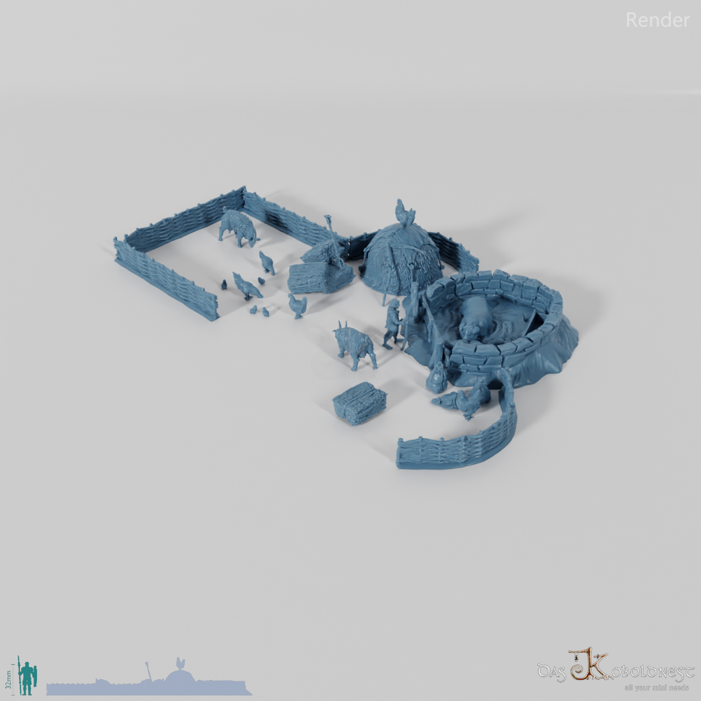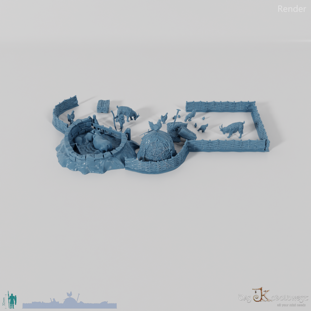 Der Standardmaßstab aller Modelle im Koboldnest ist 1:56 und entspricht der Augenhöhe eines aufrecht stehenden Menschen von 32 mm als Größenreferenz.