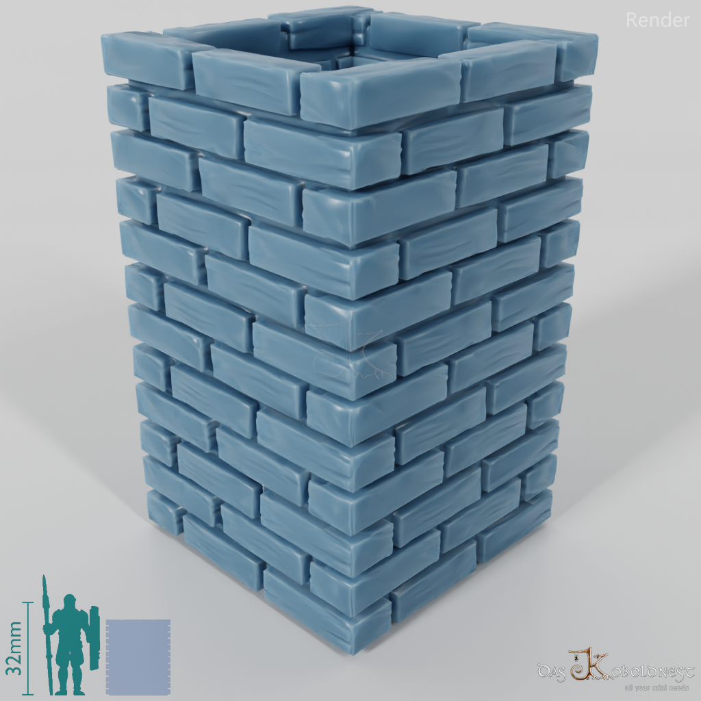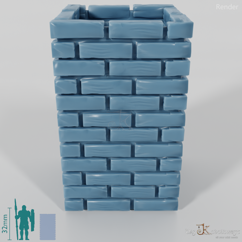 Aus Ziegelsteinen gemauerter, eckiger Schornstein