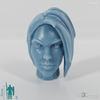 Frauenkopf mit kurzen Haaren auf der einen, langen auf der anderen Seite