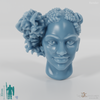 Frauenkopf mit geschorenen Haaren auf der einen, langen auf der anderen Seite