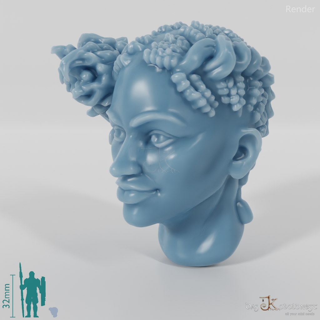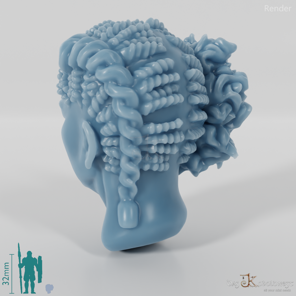 Frauenkopf mit eng anliegenden, geflochtenen Haaren