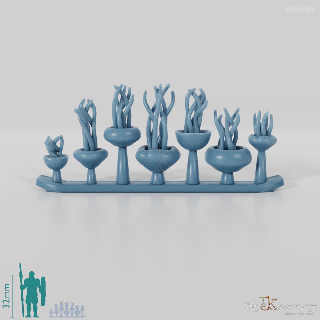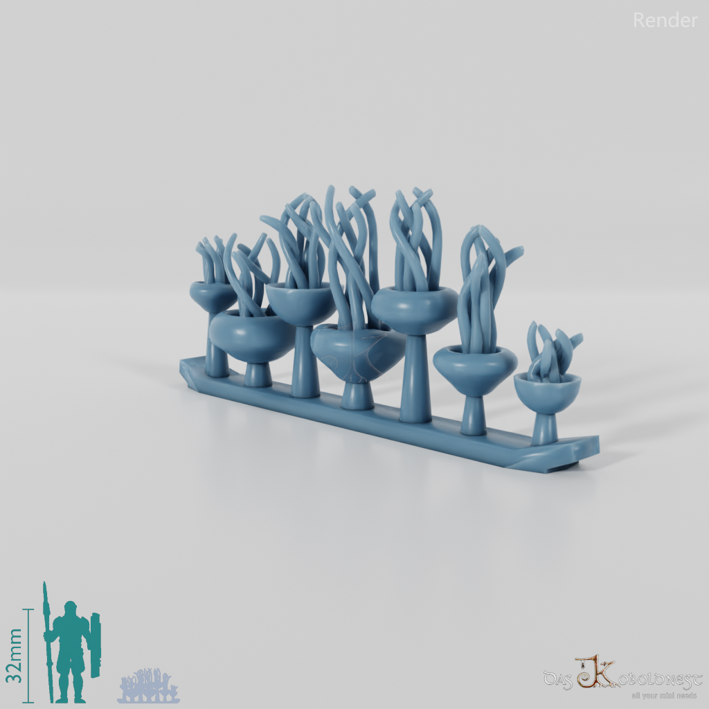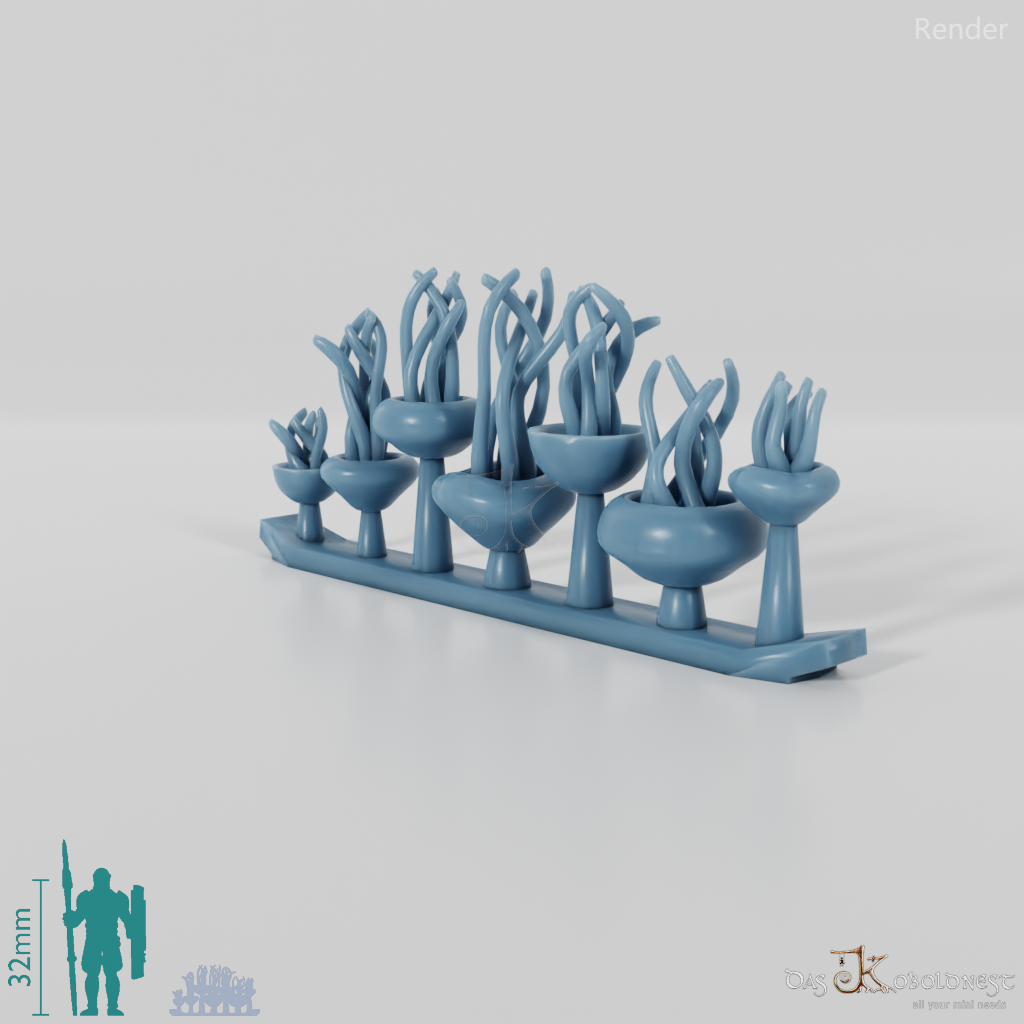 Sieben verschiedene Quallen mit langen Fangarmen Die Modelle werden in zusammenhängendem Rahmen geliefert und müssen beispielsweise mit einem Bastelmesser abgetrennt werden. Model by Pellinor1, licensed under CC BY 4.0