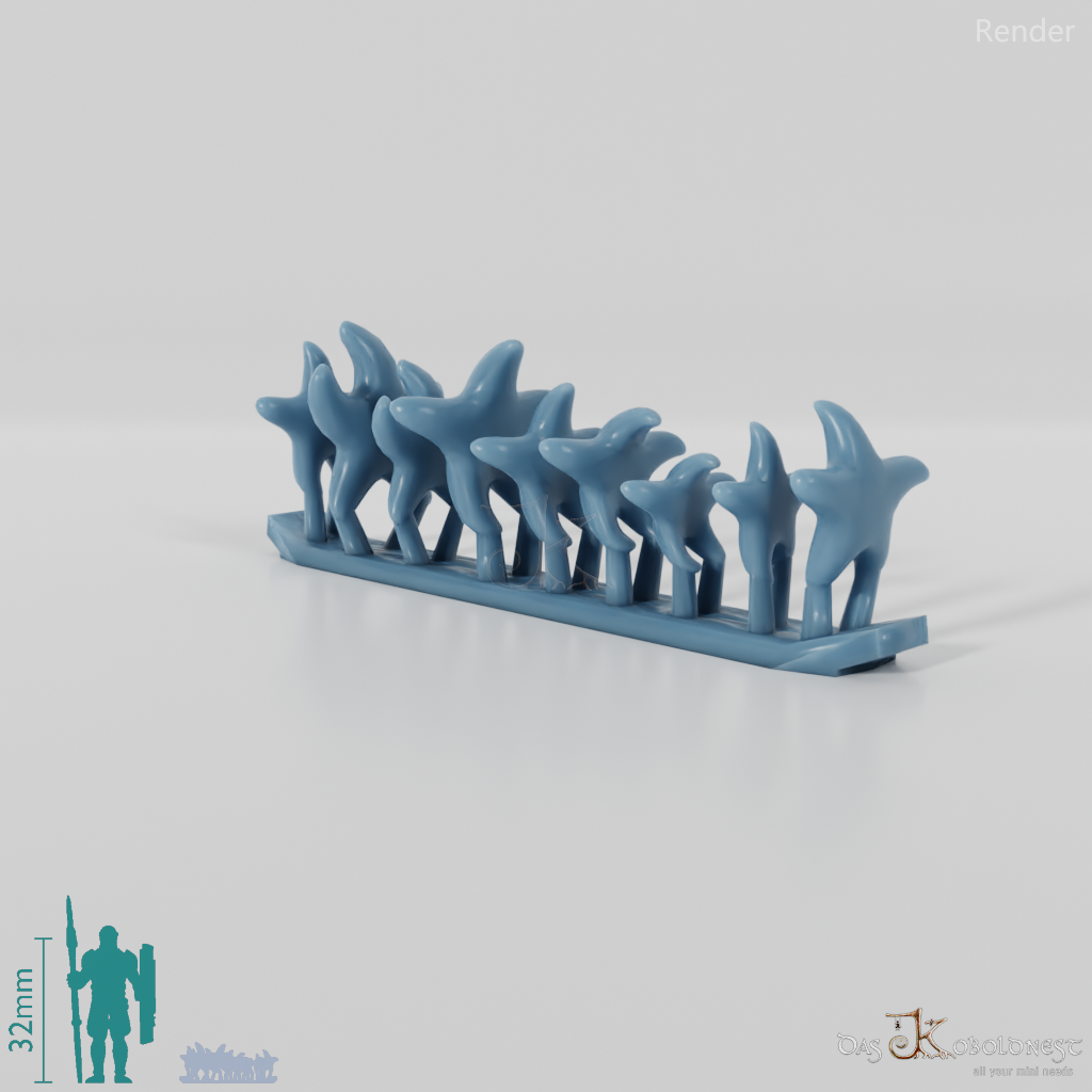 Neun verschiedene kleine Seesterne Die Modelle werden in zusammenhängendem Rahmen geliefert und müssen beispielsweise mit einem Bastelmesser abgetrennt werden. Model by Pellinor1, licensed under CC BY 4.0
