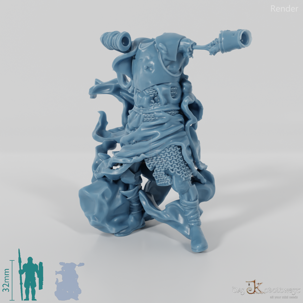 Untotenkörper ohne Kopf und Hände mit wehenden Stofffetzen und Rüstung. Das Modell kann beliebig mit allen modularen Köpfen und Waffen der Reihe "Die Armee der Toten" kombiniert werden. Im Customizer von The Printing Goes Ever On kannst du dir selbst eine Vorschau deiner modularen Geisterarmee erstellen und die perfekten Kombinationen für dich finden.
