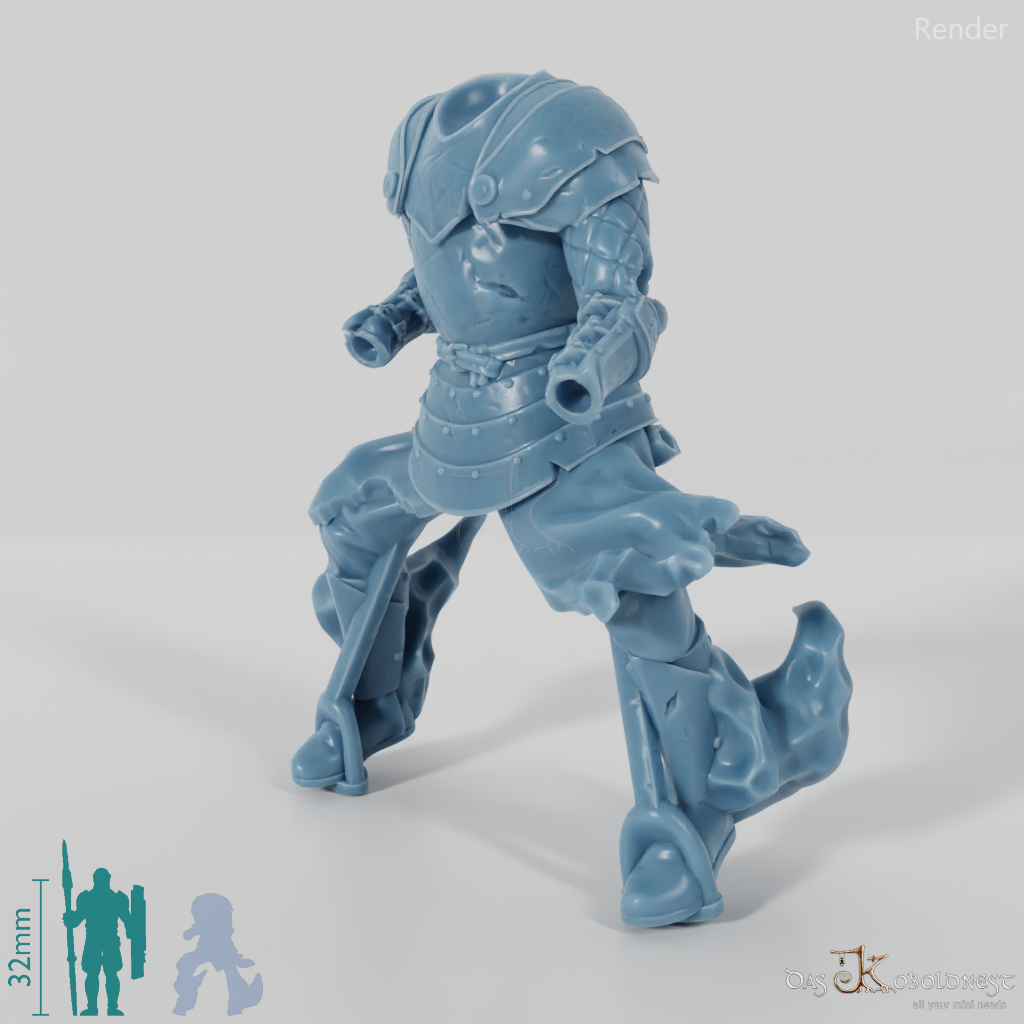 Untotenkörper ohne Kopf und Hände mit wehenden Stofffetzen und Rüstung. Das Modell kann beliebig mit allen Geisterpferden, modularen Köpfen und Waffen der Reihe "Die Armee der Toten" kombiniert werden. Im Customizer von The Printing Goes Ever On kannst du dir selbst eine Vorschau deiner modularen Geisterarmee erstellen und die perfekten Kombinationen für dich finden.